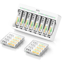 Ebl - Professional Care And Low Self Dischargeebl, Since 1998, Professional On Batteries And Chargers More Than 20 Years.Professional And Reliable On Rechargeable Batteries And Battery Chargers.Ebl Always Persistently Providing High Quality And Services For Everyone.Modelebl-C9010N 8 Bay Individual Battery Charger - For Aa Aaa Ni-Mh Rechargeable Batteriesconvenient For Usingfreely Charge 1/2/3/...6/7/8 Pieces Aa/Aaa Ni-Mh Batteriescompatibleaa/Aaa Ni-Mh Rechargeable Batterieselectrical Specificationinput Voltage: Dc 5Vinput: 2A Output: Dc 1.2V Aa: 1800Ma Aaa: 900Maled Indicationbattery Charging In Progress - Keep Redfully Charged - Keep Greenenvironment Conditionsusing Environment: Temperature: 0-35?; Humidity:35%-95%Storage Environment: Temperature: -10-50?; Humidity: 45%-85%Features Of Rechargeable Batterieshigh Performance, Up To 1,200 Rechargeable Cycles.Precharged 15%~20% Of Capacity By Solar Energy. Could Be Used When You Get It.Excellent Charge/Discharge Performance, The Batteries Will Keep A High Quality After 3-5 Times Charge & Discharge When Used In The First Time Or Long Time No Used.Longer Life In The High Drain Devices Than Normal Alkaline Batteries.What You Get1 C9010N Individual Battery Charger 16 Aaa 1100Mah Rechargeable Batteries 4 Battery Storage Cases 1 User Manual 1 Micro Usb Charging Port.