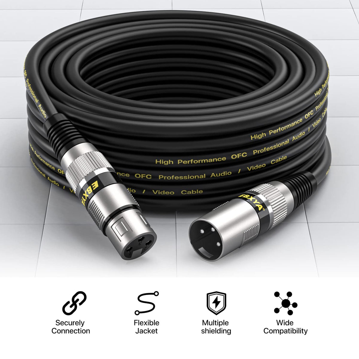 [Hi-Fi Sound Quality] The Xlr Cables Made Of 24Awg Oxygen Free Copper With Double Shielding (Copper Braids Shieling And Foil Shielding), Ensures High Fidelity Sound Quality Of This Xlr Male To Female Xlr Cable And Provide Maximum Conductivity And Signal Clarity. The Alloy Connectors Have Great Signal Transmission, Anti-Corrosion, And Oxidation Resistance | [Professional Xlr Cables] Ebxya Xlr Microphone Cables Are Ideal For Professional Touring And Live Sound Applications. The Internal Oxygen-Free Copper Core Wire, Balanced Transmission Mode, Cotton Yarn, Multi Shielding Layers Make Xlr To Xlr Cable Stronger Anti-Interference Ability Is Conducive To Long-Distance Transmission And Transmits High Fidelity Sound And Perfect Signal To The Greatest Extent | [Premium Durability] Xlr Dmx Cable Is More Flexible And Durable Than Other Xlr Cables. Our Xlr With Pvc Sheath Is Easy To Use And Store, With High Tensile Resistance, Wear Resistance, And Flexibility. It Can Withstand Bend Test Times, Is More Durable Than Normal, And Has A Longer Life | [Widely Compatibility] Ebxya Balanced Xlr Male-To-Female Cables Designed For Equipment With 3-Pin Xlr Connectors. Our Microphone Cable Has Amazingly Superior Clarity, Noise Cancellation, And Rf Interference, And Helps Your Instrument Sound To Flow Clearly And Naturally. Xlr Cable Is Widely Used In Mixing Consoles, Dmx Stage Lights, Cameras, Microphones, Audio, Studio Harmonizers, Mixing Boards, Patch Bays, Preamps, Speaker Systems, Stage Lighting, Etc | What You Get - This Package Has Xlr Cables 35Ft 2 Pack, We Strive To Provide Customers With Satisfactory Products And Services, If You Have Any Questions About Our Products, Please Feel Free To Contact Us, And We Will Reply To You Asap