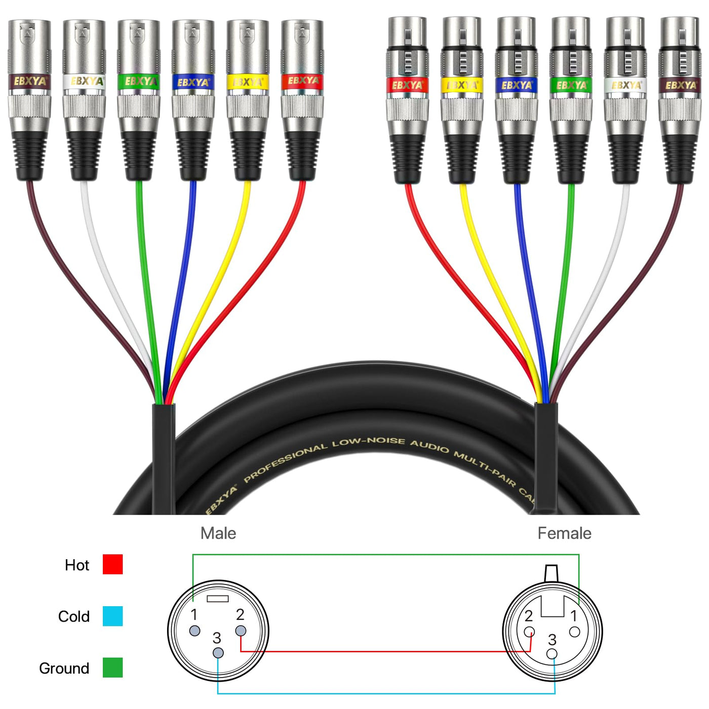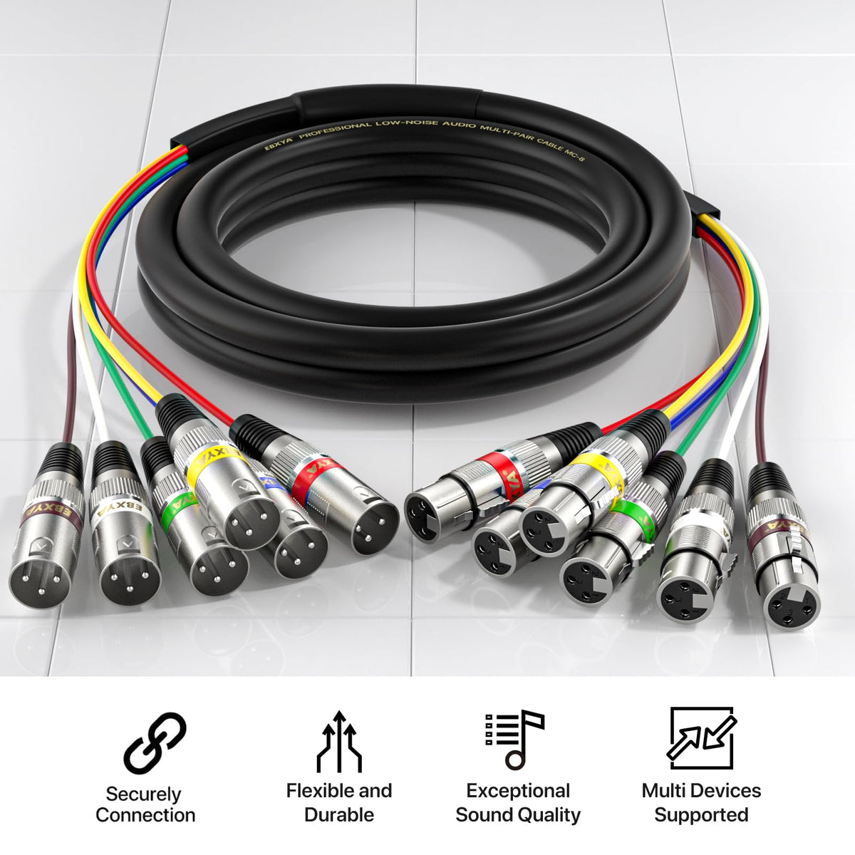 Newly Upgraded 6-Channel Design - The Snake Cable Is Specially Designed For 6 Channels. The Xlr Snake Can Transmit Balanced Audio Signals From 6 To 6 Other Devices. One Cable Equals The Work Of 6 Cables. It Is Easy To Carry And Store And Can Easily Solve The Trouble Of Winding Multiple Single-Channel Cables | Colored 3-Pin Snake Cables - The 6-Channel Xlr Snake Is Designed In 6 Different Colors (Red, Orange, Yellow, Green, White And Brown) To Help You Easily Trace Microphones, Mixing Boards And Other Connectors. The Xlr Snake Cable Can Be Used With Any Device Equipped With A 3-Pin Xlr Female To Male | Anti-Interference Design - This Xlr Cable Snake Uses 24Awg Oxygen-Free Copper And Multiple Shielding Designs (Anti-Tensile Cotton Rope, Aluminum Foil Layer, Polyethylene Insulation), Maximizing External Interference Resistance And Providing Maximum Conductivity And Signal Clarity. With A Soft & Durable Pvc Jacket Easy To Clean | Wide Compatibility - The 6-Channel Microphone Cable Adopts A Self-Locking Connector, Heavy-Duty Zinc Alloy Shell, And Nickel-Plated Pin Design, Which Increases The Durability Of The Cable. Xlr Patch Cable Is Widely Used In Snake System Stage Boxes, Live, Recording, And Studio | Worry-Free Service - This Package Has Xlr Snake Cables 6 Channel 3Ft 2 Pack, We Strive To Provide Customers With Satisfactory Products And Services, If You Have Any Questions After The Purchase Of Our Products, Please Feel Free To Contact Us, And We Will Reply To You Within 24 Hours