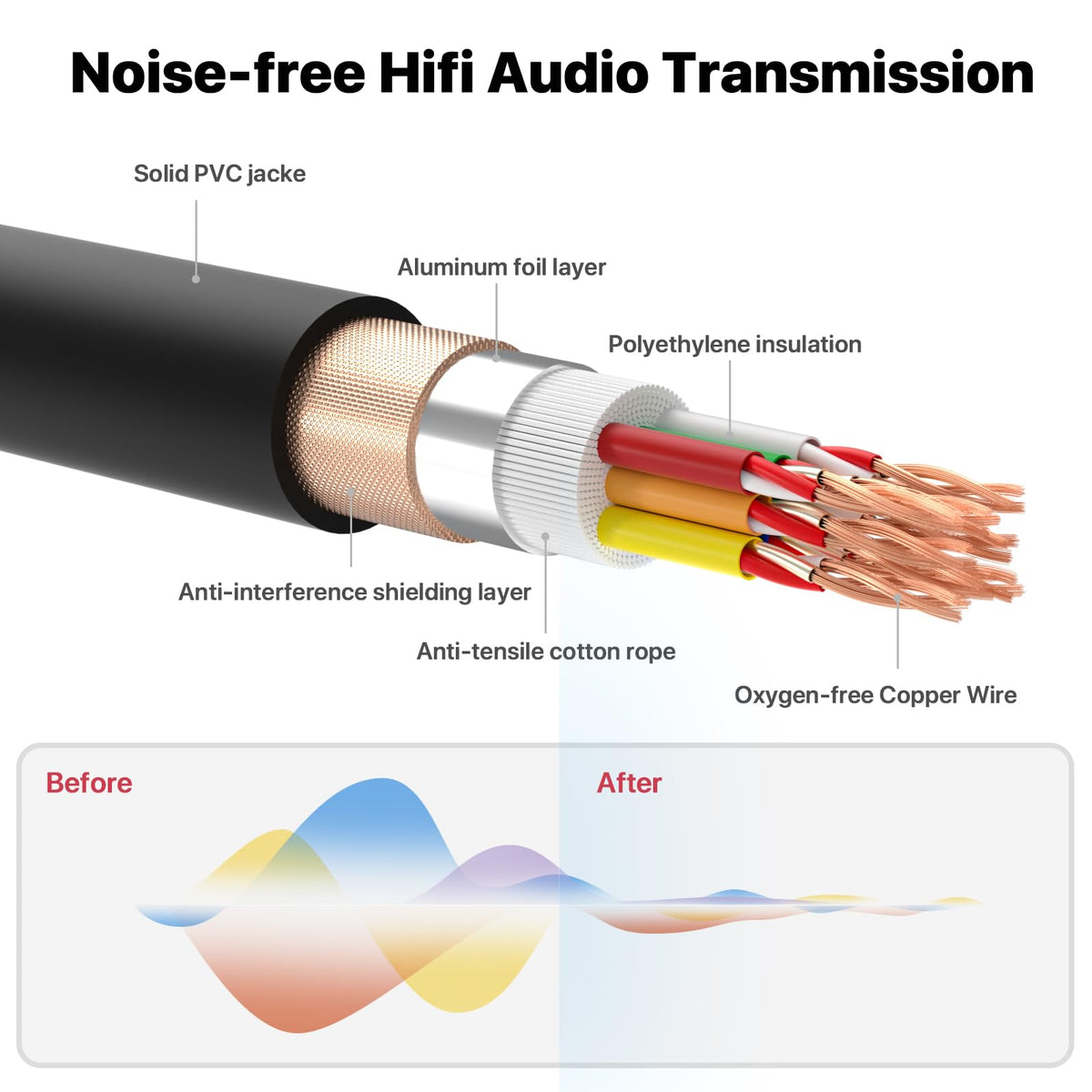 Q: How does the sound quality of the EBXYA 8 Channel XLR Snake Cable compare to standard microphone cables?A: The EBXYA XLR Snake Cable features Oxygen-Free Copper construction, polyethylene insulation, and copper braided shielding, which enhances resistance to external interference. This design maximizes conductivity and signal clarity, resulting in superior sound quality compared to standard microphone cables.