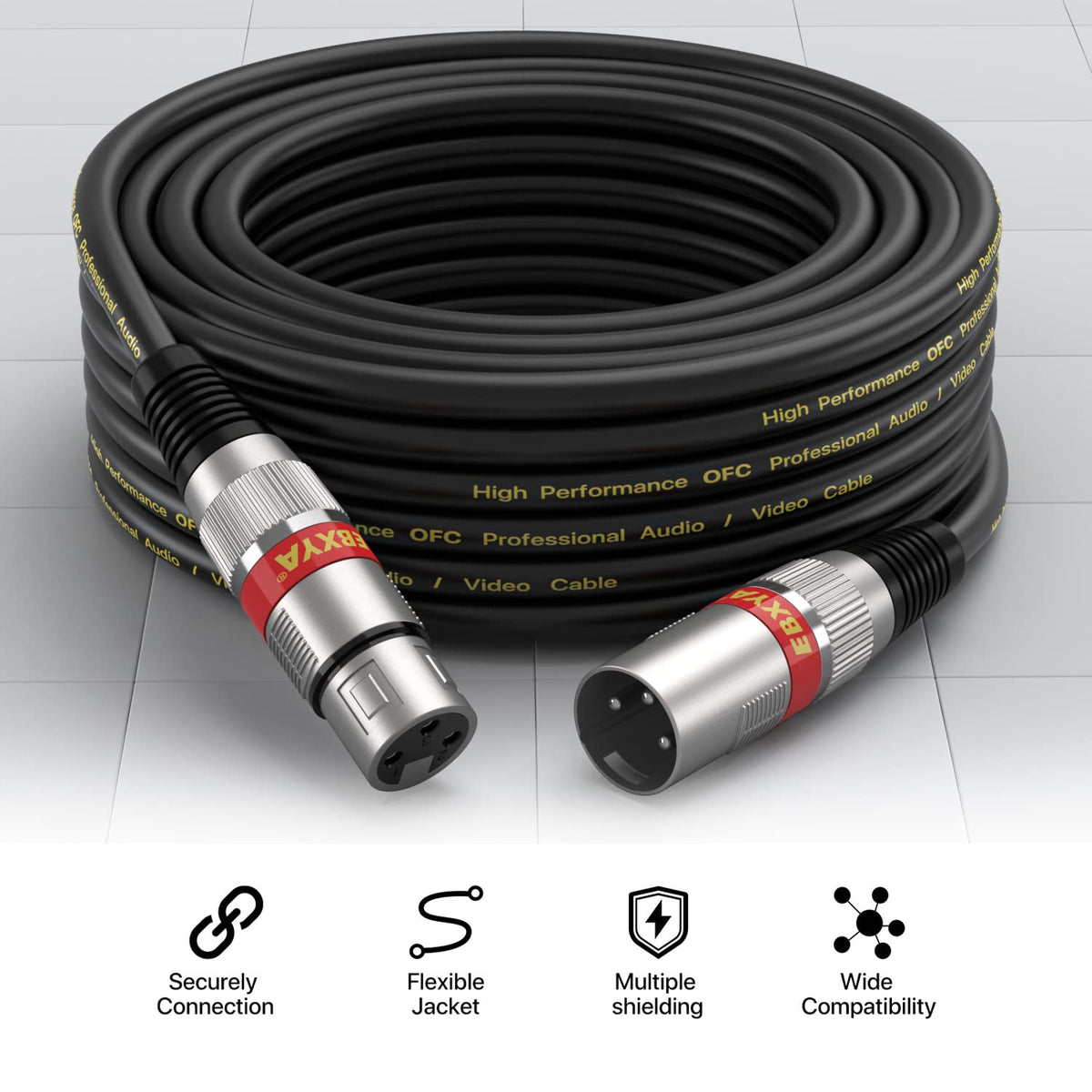 [Premium Durability] Xlr Speaker Cable Is More Flexible And Durable Than Other Xlr Cables. Xlr Mic Cable With Pvc Sheath Is Easy To Use And Store, Each Xlr Cable Has A Different Color Connector, Which Can Easily Identify Them When Used, And This Microphone Cable Can Withstand Bend Test Times, Is More Durable Than Normal, And Has A Longer Life | [Self-Locking Connector] Ebxya Xlr Microphone Cable Is Made Of A Self-Locking Design That Is Easy To Pull Out, Insert, And Firmly Lock. Our Short Xlr Cable Adopts A Heavy-Duty Zinc Alloy Shell And Nickel-Plated Pins Design, Which Increases The Durability Of The Cable | [Widely Compatibility] Balanced Xlr Male-To-Female Cables Designed For Equipment With 3-Pin Xlr Connectors, With Superior Clarity To Help Your Instrument Sound Flow Clearly And Naturally. Which Can Be Connected To Any Music Recording Equipment With A 3-Pin Xlr Connector, Such As Microphones, Mixers, Dmx Stage Lighting, Mixing Boards, Speaker Systems Etc | [Hi-Fi Sound Quality] This Xlr Cables Uses 100% 24Awg Oxygen-Free Copper Conductors, Copper Braid, And Double Shielding (Foil Shielding And Copper Braided Shielding), Maximizing Resistance To External Interference, Providing Maximum Conductivity And Signal Clarity | [What You Get] This Package Has Xlr Cables 15 Feet 4 Pack, We Strive To Provide Customers With Satisfactory Products And Services, If You Have Any Questions About Our Products, Please Feel Free To Contact Us, And We Will Reply To You Asap
