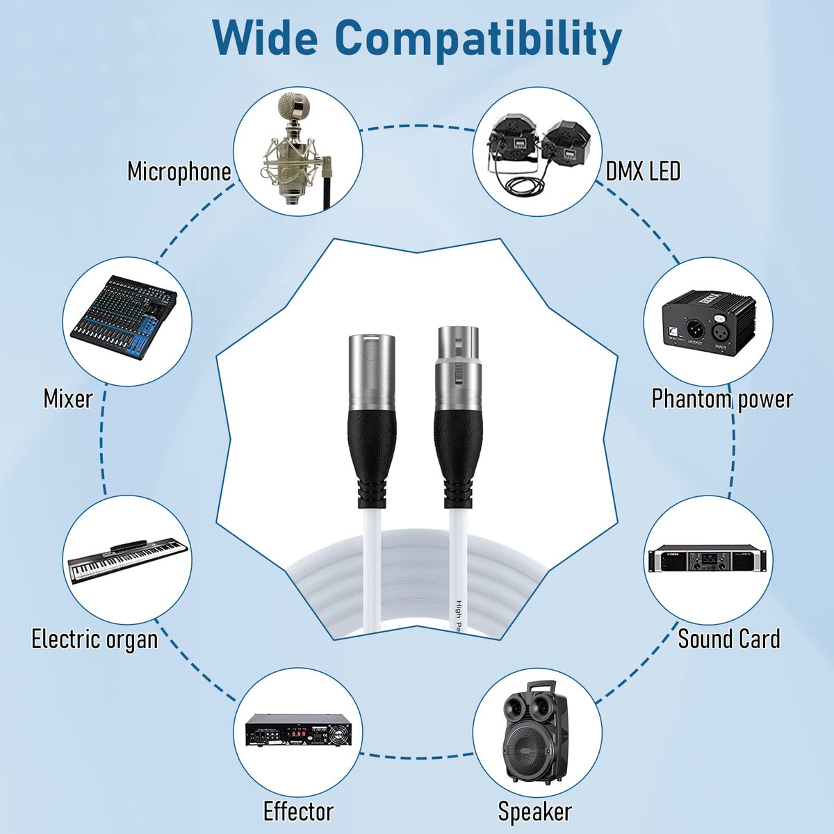 Ebxya Xlr Cable 50Ft 2 Packs Premium Balanced Microphone Cable With 3 Pin Xlr Male To Female Mic Speaker Cable, White