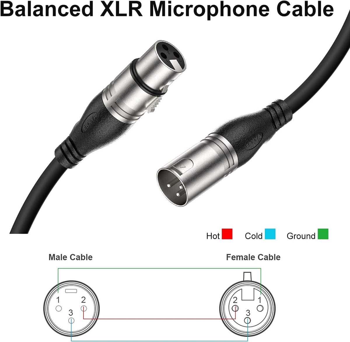 Professional Anti-Noise Design: The Internal Wire Structure Of The Microphone Cable Uses A Copper Core High-Density Braided Shield To Achieve A High Degree Of Anti-Interference Effect, And Resist External Interference. Oxygen-Free Copper Conductor, The Transmission Speed Is Very Fast | Reliable Interface: The Microphone Cable Connector Is Composed Of A 3-Pin Balanced Connection Of Grounding, Hot End (+), And Cold End (-), Which Effectively Fixes The Signal Flow Direction And Prevents Connection Errors. The Metal Connector Has A Special Lock Design And Is Closely Connected To The Device | Flexible And Durable: The Outer Protection Of The Microphone Cable Is Made Of Pvc Insulation, A Soft Material. The Soft-Flexible Pvc Jacket Protects The Delicate Fiber Core. Easy To Clean, Wipe It With Wet Paper To Remove Dirt | Wide Compatibility: The Male-To-Female Xlr Cable Can Be Used On Any Equipment Equipped With 3-Pin Xlr, Such As Microphones, Amplifiers, Mixers, Phantom Power Supplies, Speakers, Guitars, Camera Equipment, Etc. Enjoy Your Music Life Anytime, Anywhere At Home, Outdoors, At Parties, Recording, And On Other Occasions | What You Get: The Package Includes Male-To-Female Xlr Cables. Worry-Free Customer Service. If You Have Any Questions, We Will Solve Your Problem Within 24 Hours
