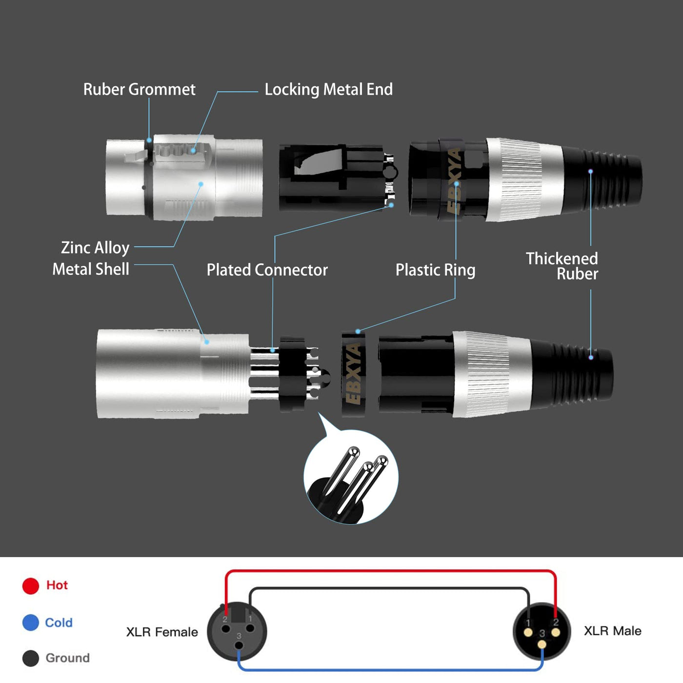 [Premium Durability] Xlr Speaker Cable Is More Flexible And Durable Than Other Xlr Cables. Our Xlr Mic Cable With Pvc Sheath Is Easy To Use And Store, With High Tensile Resistance, Wear Resistance, And Flexibility. It Can Withstand Bend Test Times, Is More Durable Than Normal, And Has A Longer Life | [Widely Compatibility] Balanced Xlr Male-To-Female Cables Designed For Equipment With 3-Pin Xlr Connectors, With Superior Clarity To Help Your Instrument Sound Flow Clearly And Naturally. Which Can Be Connected To Any Music Recording Equipment With A 3-Pin Xlr Connector, Such As Microphones, Mixers, Dmx Stage Lighting, Mixing Boards, Speaker Systems Etc | [Hi-Fi Sound Quality] This Xlr Cables Uses 24Awg Oxygen-Free Copper Conductors, Copper Braid, And Double Shielding (Foil Shielding And Copper Braided Shielding), Maximizing Resistance To External Interference, Providing Maximum Conductivity And Signal Clarity | [Self-Locking Connector] Ebxya Xlr Microphone Cable Is Made Of A Self-Locking Design That Is Easy To Pull Out, Insert And Firmly Lock, Our Short Xlr Cable Adopts A Heavy-Duty Zinc Alloy Shell And Nickel-Plated Pins Design, Which Increases The Durability Of The Cable | [Worry-Free Service] This Package Has Xlr Cable 10 Ft 2 Pack, We Strive To Provide Customers With Satisfactory Products And Services, If You Have Any Questions About Our Products, Please Feel Free To Contact Us, And We Will Reply To You Asap