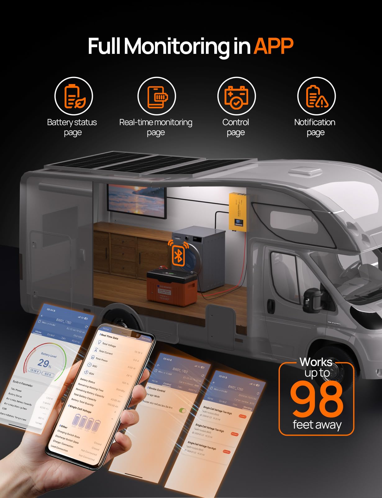 Q: Can I monitor this battery using an app?A: Yes, it features built-in Bluetooth for smart app control, allowing you to monitor performance from a distance.
