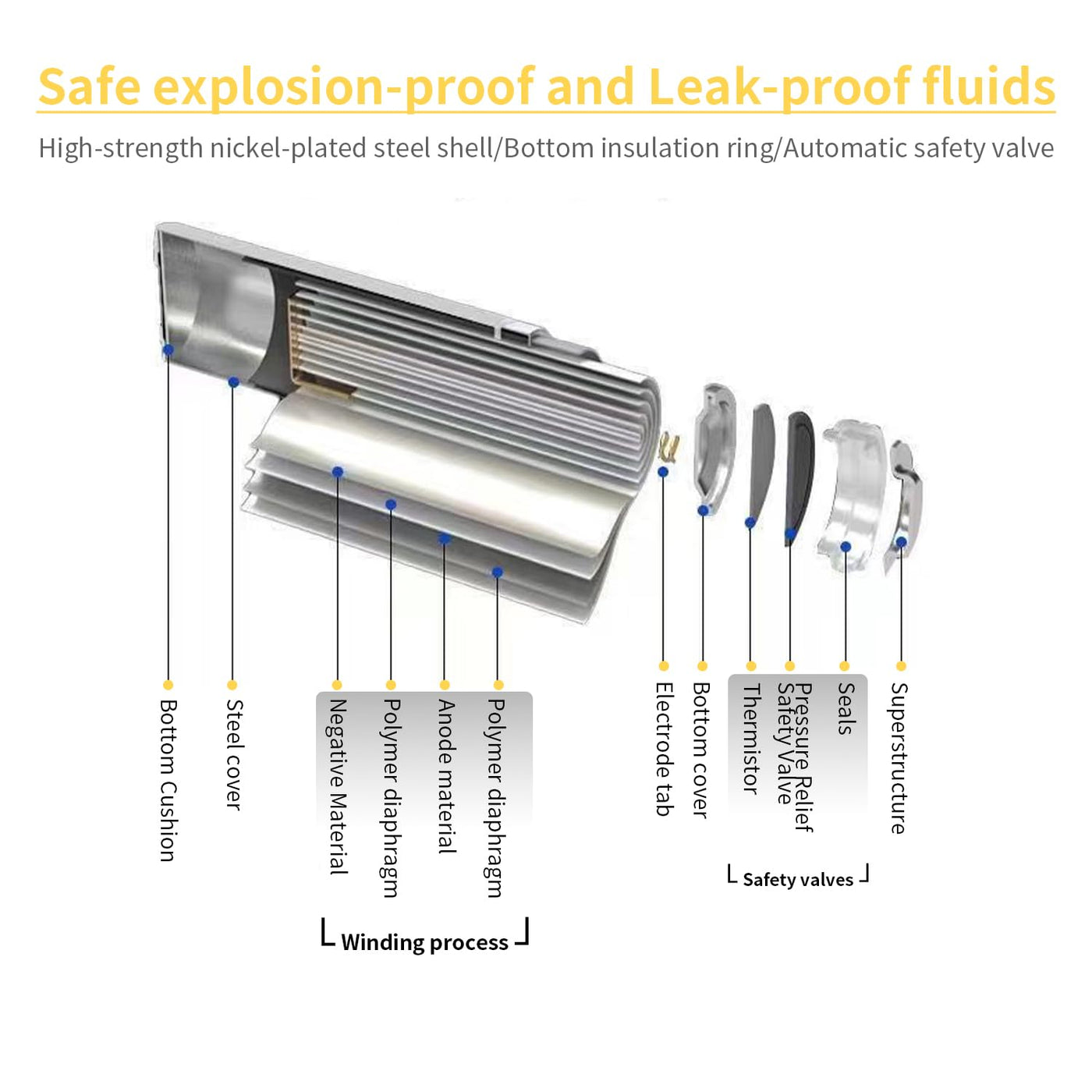 Q: What safety features does the EcoSolutions battery include?A: The EcoSolutions 21700 battery features an anti-corrosion shell that effectively protects the battery and enhances its safety. It is designed to prevent the waste of non-rechargeable batteries and is compliant with safety standards for lithium-ion batteries.