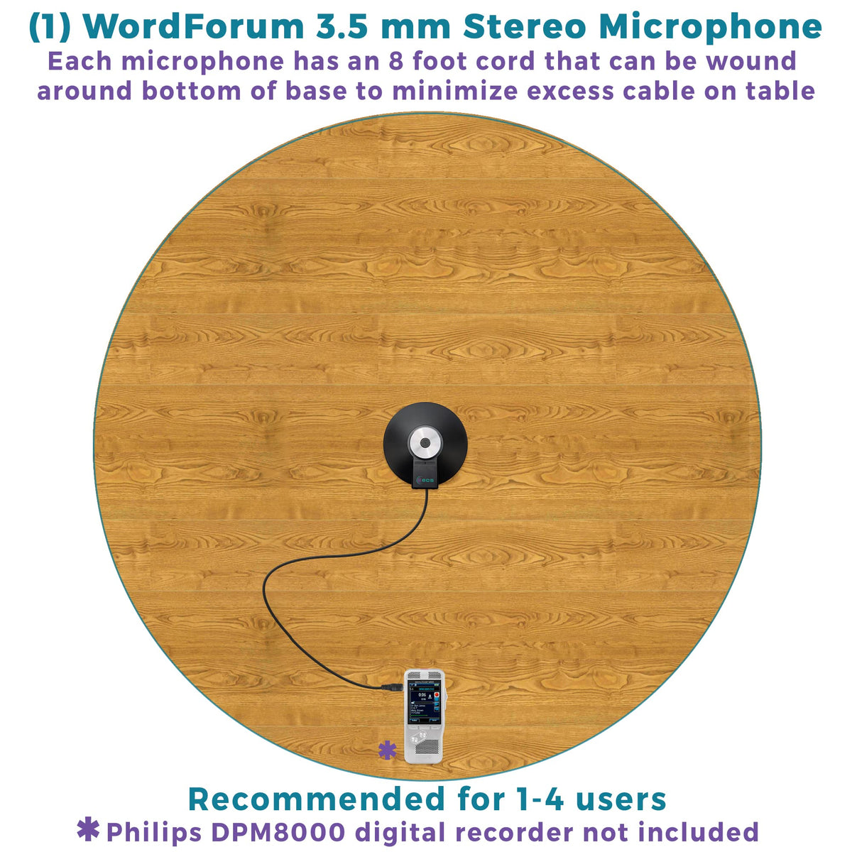 Wordforum 3.5 Mm 360 Stereo Conference Microphone - Omnidirectional Digital Recording For Meetings, Teleconferencing, Video Conferencing - Daisy Chain Option 3.5 Mm Equipped 360 Degree Boundary Conference Microphone With Omnidirectional Digital Recording. Microphone Works With Dictation Equipment, Laptops, And Desktops Equipped With Two Headphone Ports Capable Of Recording Multiple People Speaking At Once For Meetings, Teleconferencing, Video Conferencing, Zoom, Skype, Voip (Voiceover Internet Protocol) Calls Features Wide Frequency Response For Clarity And Enhanced Intelligbility 3.5Mm Microphone Features (2) 3.5Mm Inputs For Cascading Multiple Microphones (Daisy Chain) In Multi-User Applications Includes 1 Wordforum 3.5Mm Conference Microphone With 8 Foot Cord, 1 Zippered Carrying Case. No External Power Required.