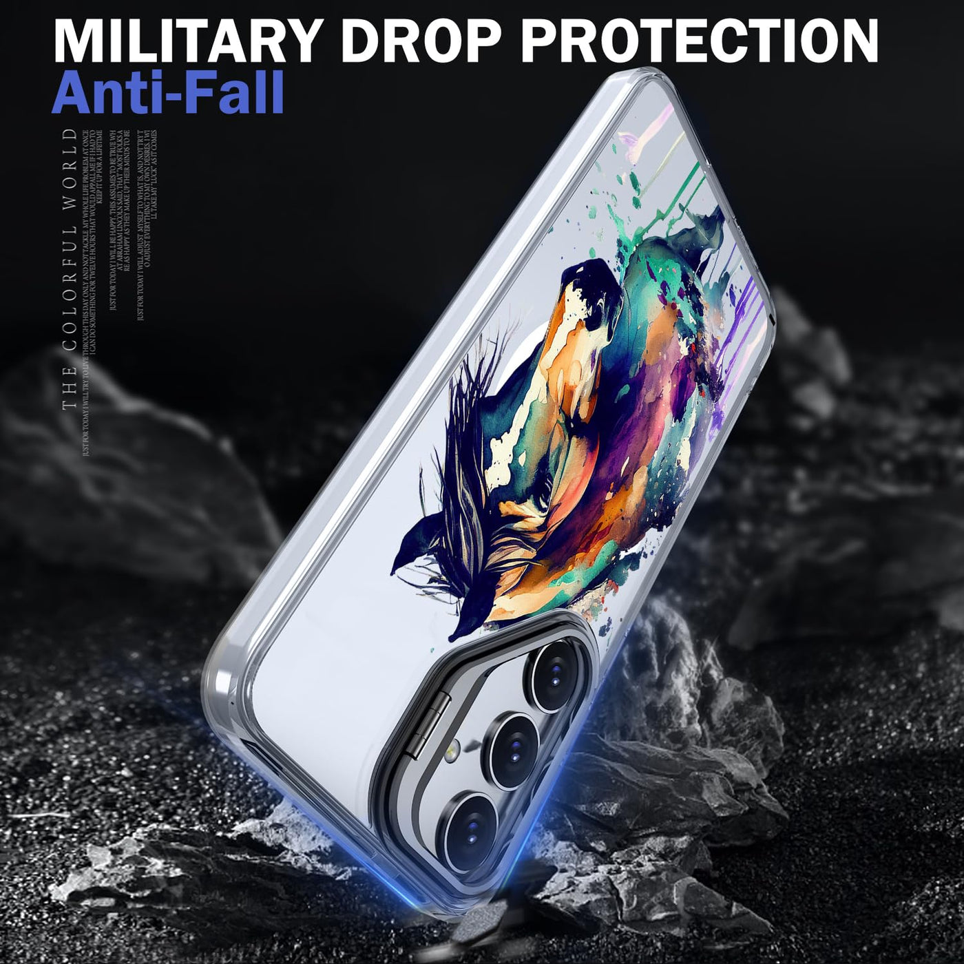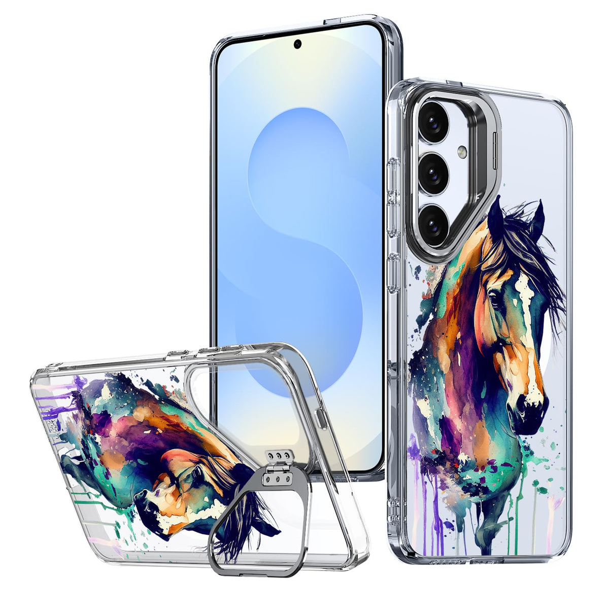 Ecute Strong Magnetic Slim Drop Protective Case With Camera Ring Kickstand For Samsung Galaxy S25 & S24 - Color Graffiti Horse