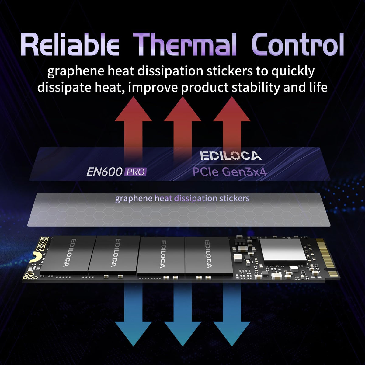 Ediloca En600 Pro Ssd 2Tb Pcle 3.0X4, Nvme M.2 2280, Up To 3500Mb/S, Internal Solid State Drive, Slc Cache 3D Nand Tlc, Graphene