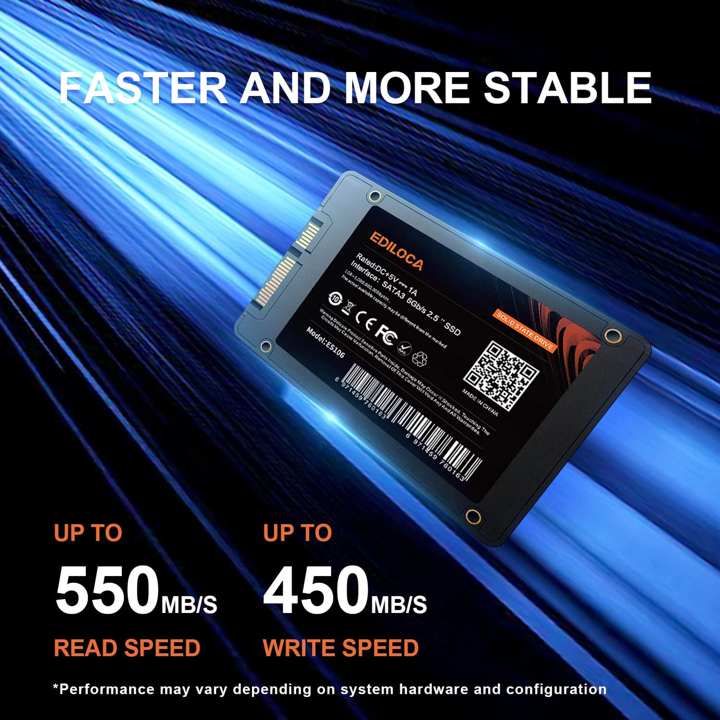Ediloca Es106 128Gb Ssd Sata Iii 2.5'' 3D Nand Internal Hard Drive, Up To 500Mb/S Read,Upgrade Pc Or Laptop Memory And Storage(Black)