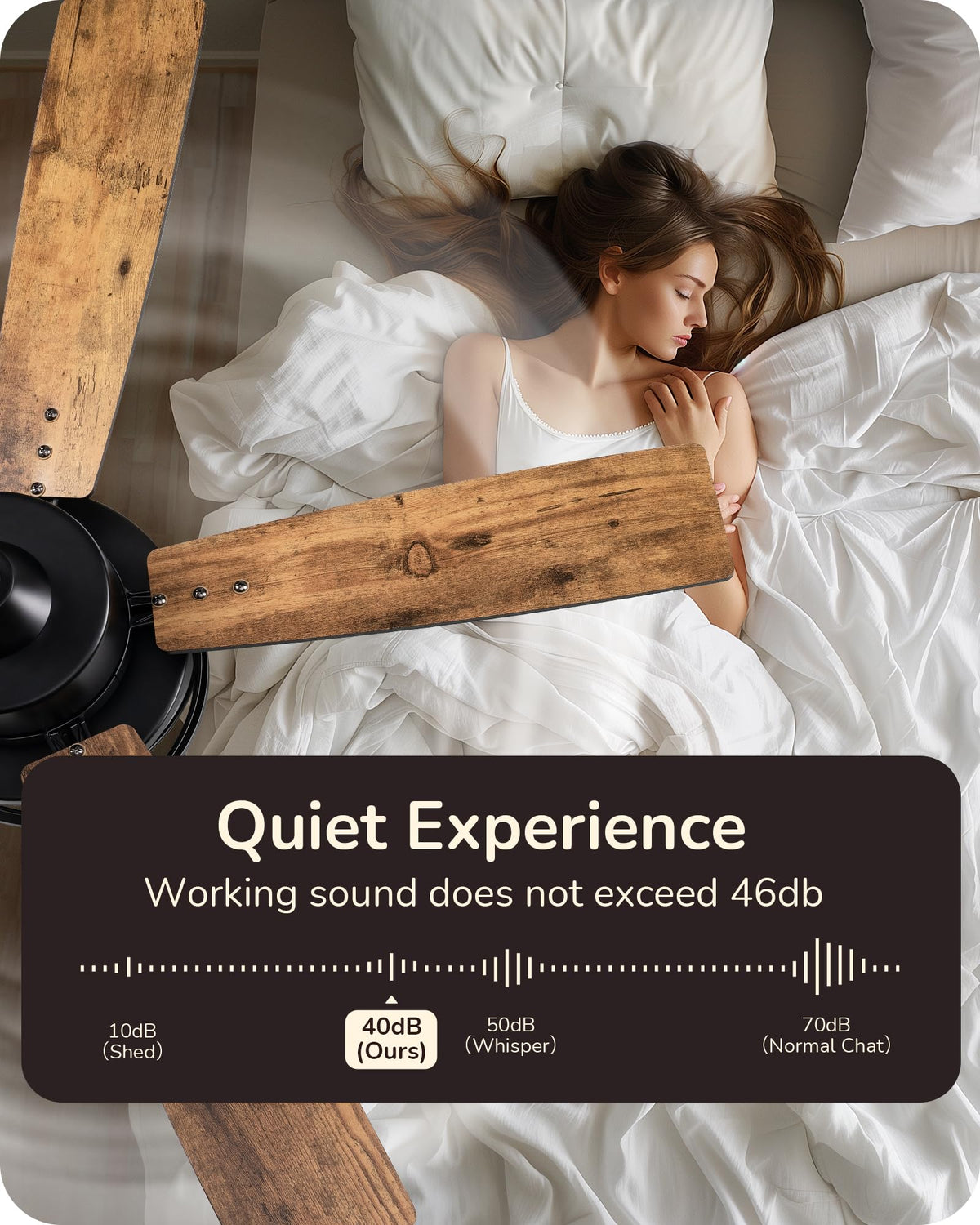 Q: What are the benefits of using a DC motor ceiling fan like the EDISHINE 42-Inch Farmhouse Ceiling Fan?A: The EDISHINE ceiling fan features a quiet, energy-efficient DC motor that provides powerful airflow while consuming less energy compared to traditional AC motors. This fan operates at noise levels as low as 46dB, making it ideal for light sleepers and ensuring a peaceful environment.