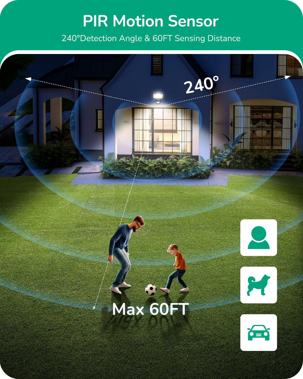 Edishine Dusk To Dawn Motion Sensor, 240 Detection Range & 60Ft Detection Distance, 120V Ac, Outdoor Replacement Motion Sensor F