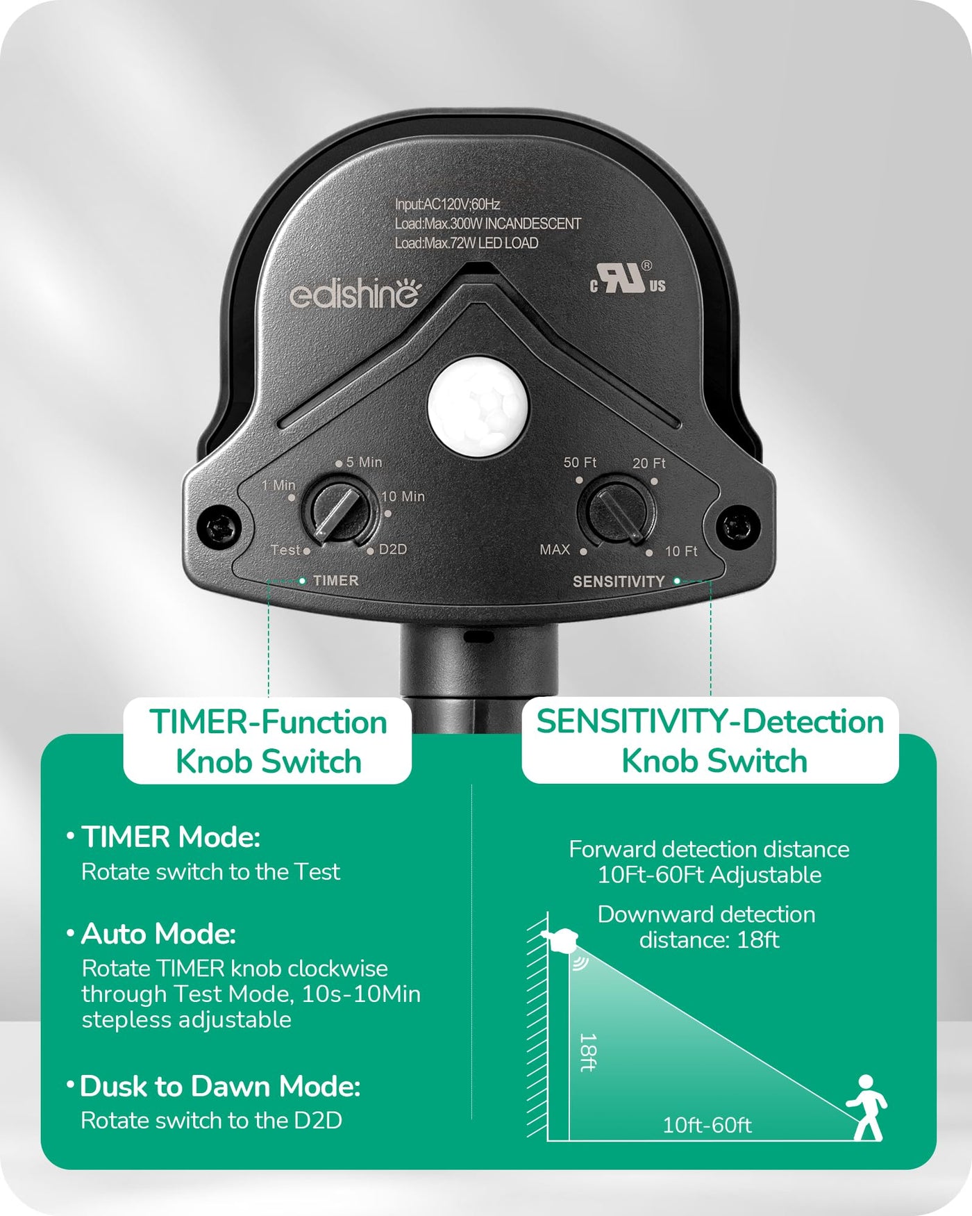 Edishine Motion Sensor, 240 & 360 Sensing Angle, Outdoor Motion Sensor 3 Modes, Replacement Motion Sensor, Automatic Dusk To Daw
