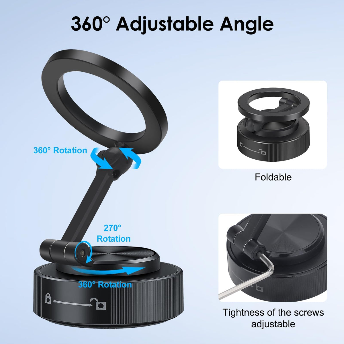 Product Description:≪/Br≫Compatibility: Works With Iphone 12&Ndash;16, Magsafe-Compatible Phones, Android Models, And Older Iphones Using The Included Magnetic Ring.≪/Br≫Magnetism: 20 Upgraded N52 Magnets Deliver A Secure Magnetic Hold, Even On Bumpy Roads.≪/Br≫Mounting: Vacuum Suction Base With A Locking Mechanism Ensures Quick, Stable Attachment To Smooth Surfaces.≪/Br≫Adjustability: 360&Deg; Rotating Joint And Foldable Arm Provide Flexible Viewing Angles.≪/Br≫Use Cases: Great For Windshields, Dashboards, Mirrors, And Home Or Gym Use.≪/Br≫