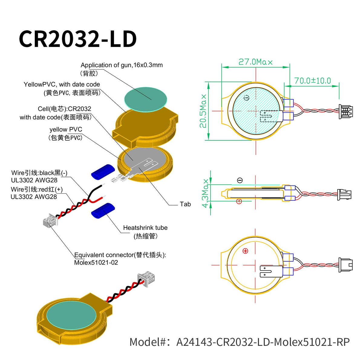Basic Info-Voltage: 3V; Capacity: 240Mah; Diameter: 20.5Mm, Height: 4.3Mm. Connector: Cr2032-Mx51021, This Is Reverse Polarity. Attention: Do Not Charge! | Certifications-Safety Test By Tuv: Iec 62133. More Than 400 Eemb Battery Models Are Ul Certified. Search ''Mh20555'' On Ul For All Eemb Ul Certification Information. | Manufacturer Direct- Please Contact Us If You Have Any Questions Or Concerns With The Product Via Amazon Message. We Will Respond To You Within 24 Hours. | Storage-No Leak, Excellent Cost Performance And Long Cycle Life. Keep The Cells In 40%-60% Charged State During Long Period Storage. We Recommend To Charge The Battery Every 3 Months After Receipt Of The Battery And Maintain The Voltage, And Store The Battery In A Cool And Dry Place. Please Keep Out Of Reach Of Children. Do Not Swallow. | Application-Suitable For Intel Nuc And Asus Rog Strix G702 G702V / Asrock Am1H-Itx Motherboard.