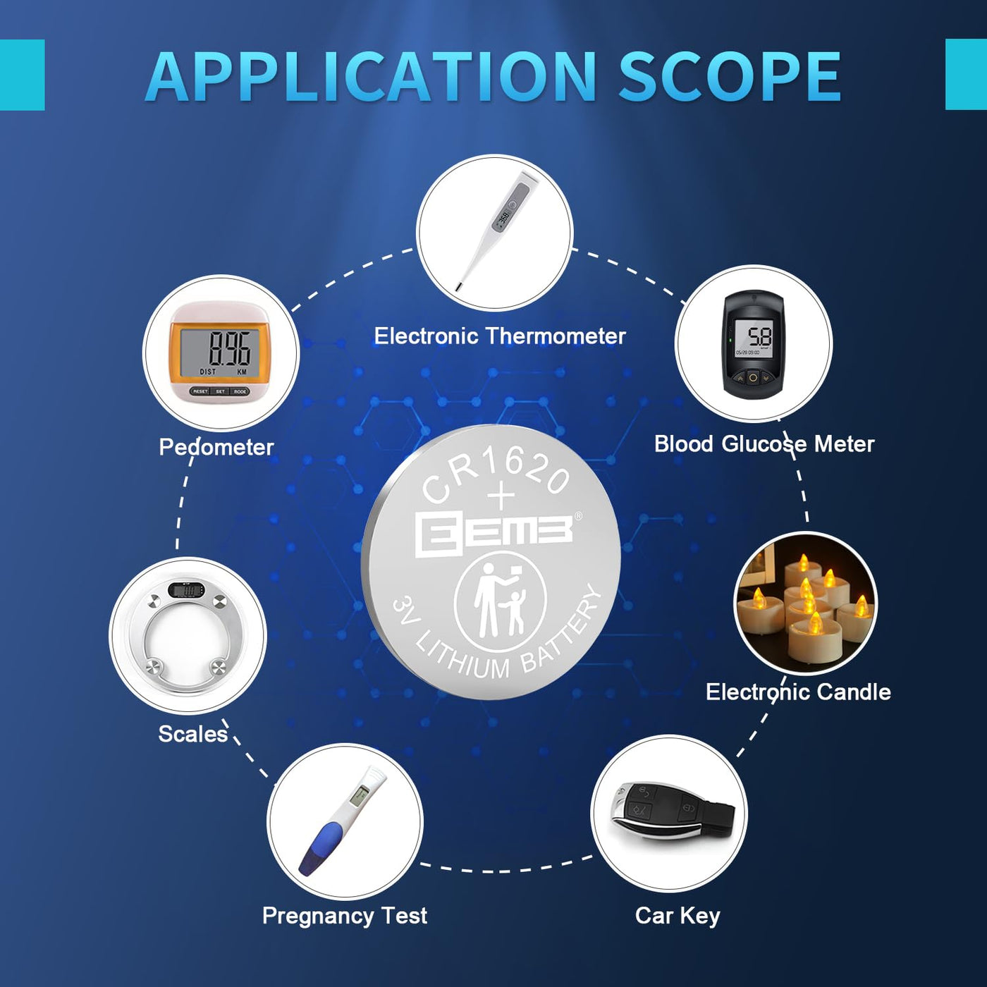 This 3 V Lithium Battery Is Designed For High-Energy Output Devices. It Has Low Risk Of Leakage And Is Durable For Sports Watches, Fitness Equipment, Which Is An Ideal Battery Choice. In Normal Temperature, The Batterys Shelf Life Can Reach 10 Years. With A Strong Energy Storage, It Can Also Ensure The Normal Working Of A Variety Of Devices In A Wide Range Of Temperatures. It Is An Excellent Backup Power Which Can Solve The Problem Of Long-Term Operation For Various Electronic Equipment. Key Features: 1) Low Self-Discharge Rate And Long Shelf Life. Self-Discharge Rate: Less Than 3% Per Year At Room Temperature. 2) Stable Discharge Characteristics. 3) Superior High-Rate Pulse Discharge Characteristics. 4) Applicable In A Wide Temperature Range. 5) Low Leakage Rate Specification: Model: Cr1620 Size: D16X H2.0 Mm Nominal Voltage: 3.0 V Nominal Capacity: 70 Mah Standard Discharge Current: 0.1 Ma Weight: 1.3 G Application: Tire-Pressure Monitoring System Electronic Toll Collection System Sports Watches, Electronic Desk Calendar, Calculator, Electronic Toys, Small Electronic Gifts Digital Thermometer, Electronic Hearing Aids, Dental Medical Equipment, Car Key Remote Control Palm Po, Tv Remote Control, Computer Motherboards