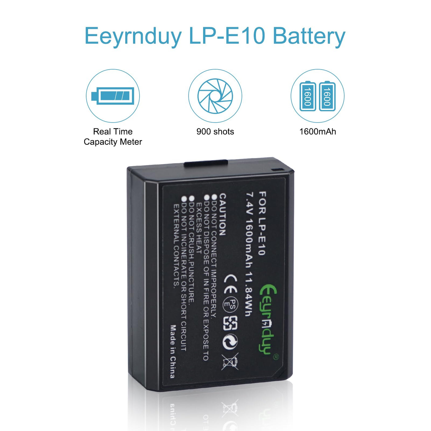 Eeyrnduy Lp-E10 2 Pack Rechargeable Lithium-Ion Batteries Replacement For Canon Lp-E10 Battery. --This Battery Features 1600Mah Which Provides A Longer Run-Time,So You Can Shoot More. --It Is Made With Premium Cells To Provide Maximum Battery Life And Also Comes With A 1-Year Manufacturer Warranty. --Eeyrnduy Lp-E10 Is Completely Compatible With The Canon Charger. Battery Specifications: Model:Lp-E10 Applicable Brand:Canon Battery Type:Lithium Ion Battery Capacity: 1600Mah Voltage: 7.4 Volts Power: 11.84Wh Battery Is Compatible With The Following Cameras : --Canon Eos Rebel T3, T5, T6, T7, T100 --Canon Eos Kiss X50, Kiss X70, Kiss X80, Kiss X90 --Canon Eos 1100D, 1200D, 1300D, 1500D, 2000D, 3000D, 4000D Caution: Not For Eos Rebel T3I, T5I, T6I, T7I Package Includes: 2 X Replacement Batteries For Canon Lp-E10 1600Mah