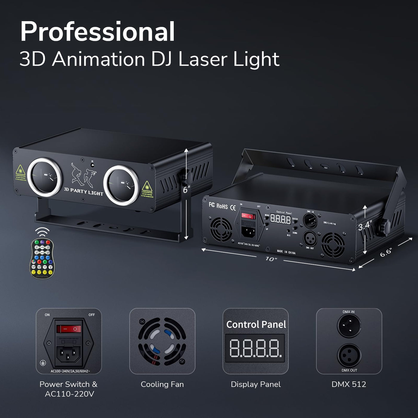 Ehaho Dj Laser Lights For Party, Hundreds Of 3D Animation Laser Light Show Machine, Dmx512 Music Sound Activated Laser Dance Lig