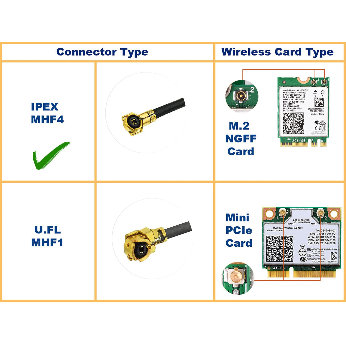 Eightwood 2.4Ghz 5Ghz Dual Band Rp Sma Male Wifi Antenna + Ipex Mhf4 To Rp Sma Female Cable 9.8 Inch 2 Pack For M.2 Ngff Network