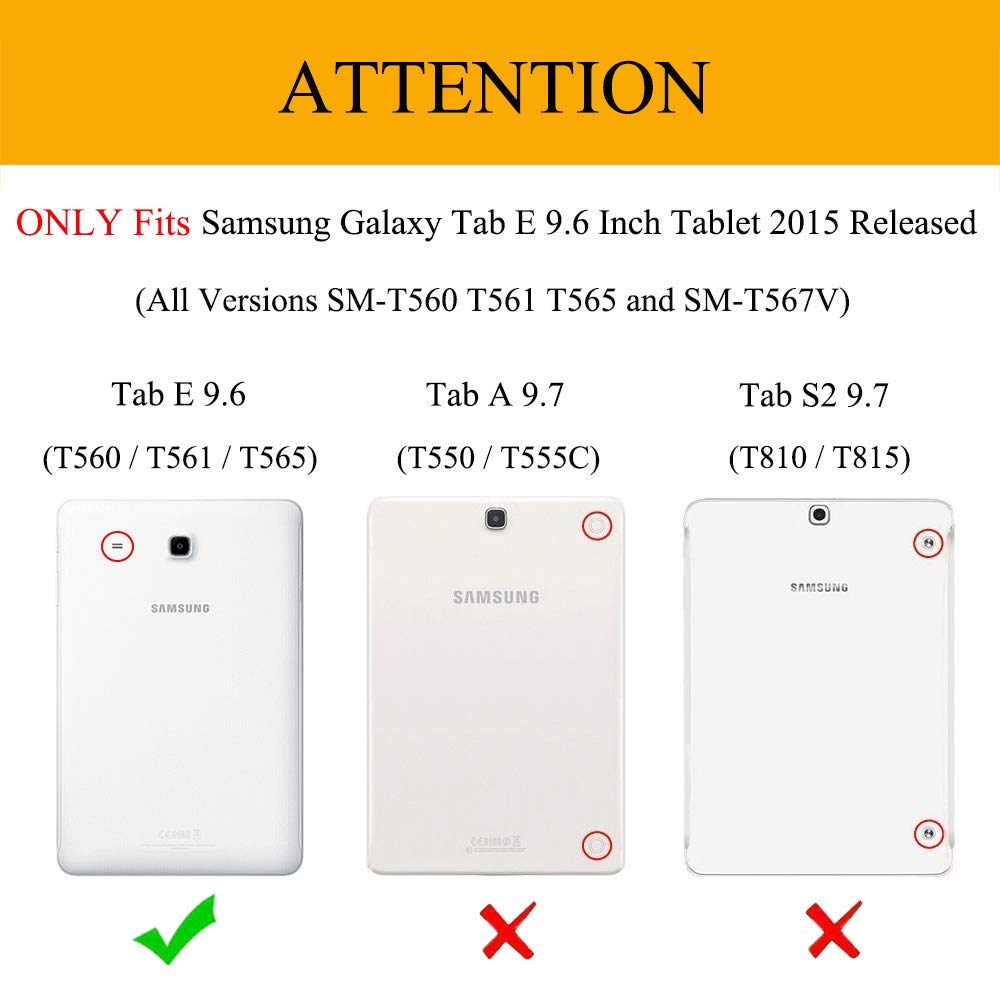 Ekvinor Galaxy Tab E 9.6 Tablet Case - A Quality Product Within Your Reach! (Available In A Variety Of Bright And Fun Colors) Features: 1. Premium Synthetic Pu Leather, Elegant And Beautiful, Prevent Your Device From Fall, Scratch, Shock And Other Damage. 2. Multi-Angle Viewing Stand, It Has Flip Capability To Transform The Case Into A Horizontal Viewing Stand And Keyboard Typing Stand. 3. Easy Access To All Features And Controls. (No Auto Wake/Sleep). Designed With A Holder For Stylus Pen (Package Not Including Stylus Pen). Important Note Before Purchase: This Case Is Only For The Samsung Galaxy Tab E 9.6 Inch (Sm-T560 / T561 / T565 & Sm-T567V Verizon Tablet). It Will Not Work For Any Other Model Tablet. Please Check The Model Number On The Back Of Your Tablet. Please Note: Colors Shown In Pictures May Slightly Differ From Actual Product Due To Lighting And Color Settings. Package Content: 1 X Pu Leather Case Cover For Samsung Galaxy Tab E 9.6 Inch