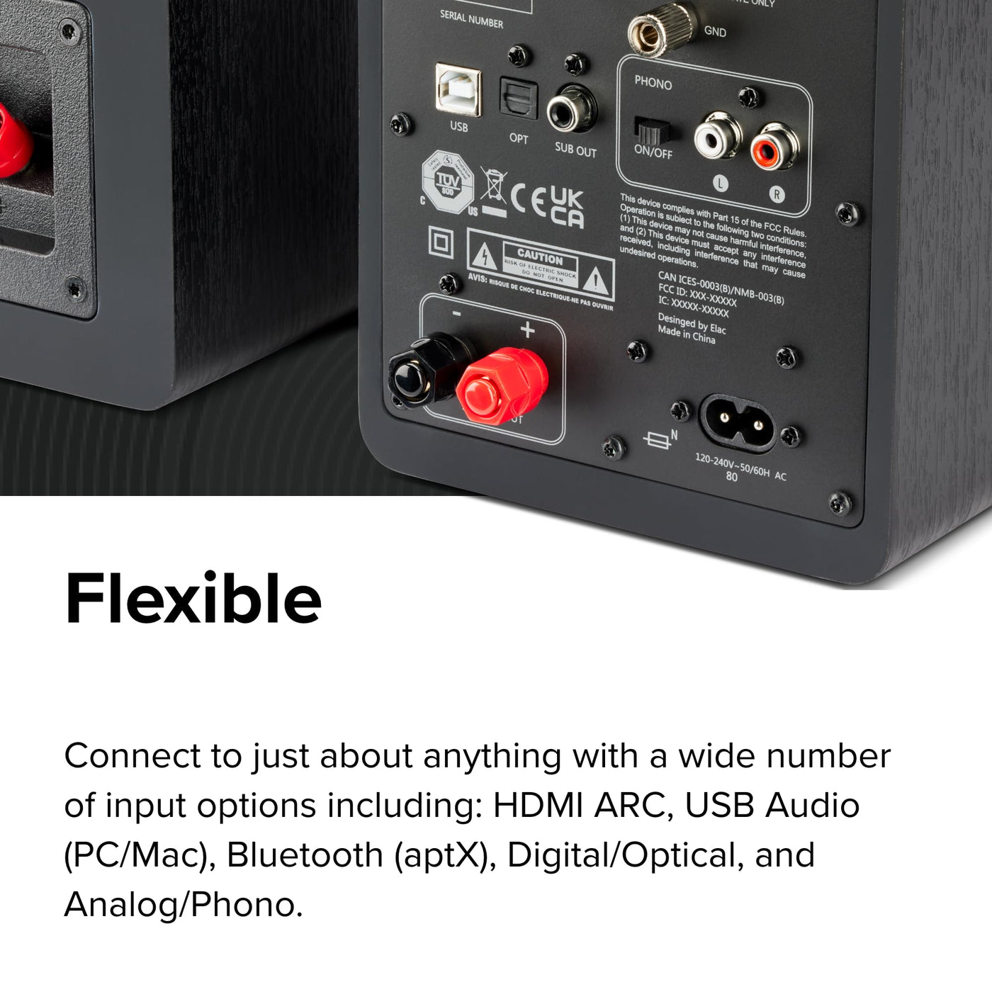 Soft-Dome Tweeter With Woofer: Debut Connex Bookshelf Stereo System Features 3/4 Tweeters And 4-1/2 Woofers That Provide A Full-Range Sound From A Small Compact Speakers | 50-Watt Amplifier Times 2: Each Book Shelf Speaker Gets A Solid 50 Watts Of Power Thats Enough To Easily Fill A Room With Music Or Sounds From Your Favorite Movie | Hdmi Arc Input: Simply Connect The Provided Hdmi Cable From Our Bluetooth Stereo Speakers To An Hdmi Arc-Enabled Tv And Use Your Tvs Remote To Control The Volume Of The Speakers | Built-In Phono-Eq: This Built-In Feature Allows You To Connect Virtually Any Turntable To The Bluetooth-Powered Speakers Using Standard Rca Cables And Begin Enjoying Music | Bluetooth With Aptx: Playback Your Favorite Music From Your Phone, Tablet, Or Computer Via Bluetooth. Our Bluetooth Studio Speakers Feature Aptx Technology That Delivers Cd-Quality Sound