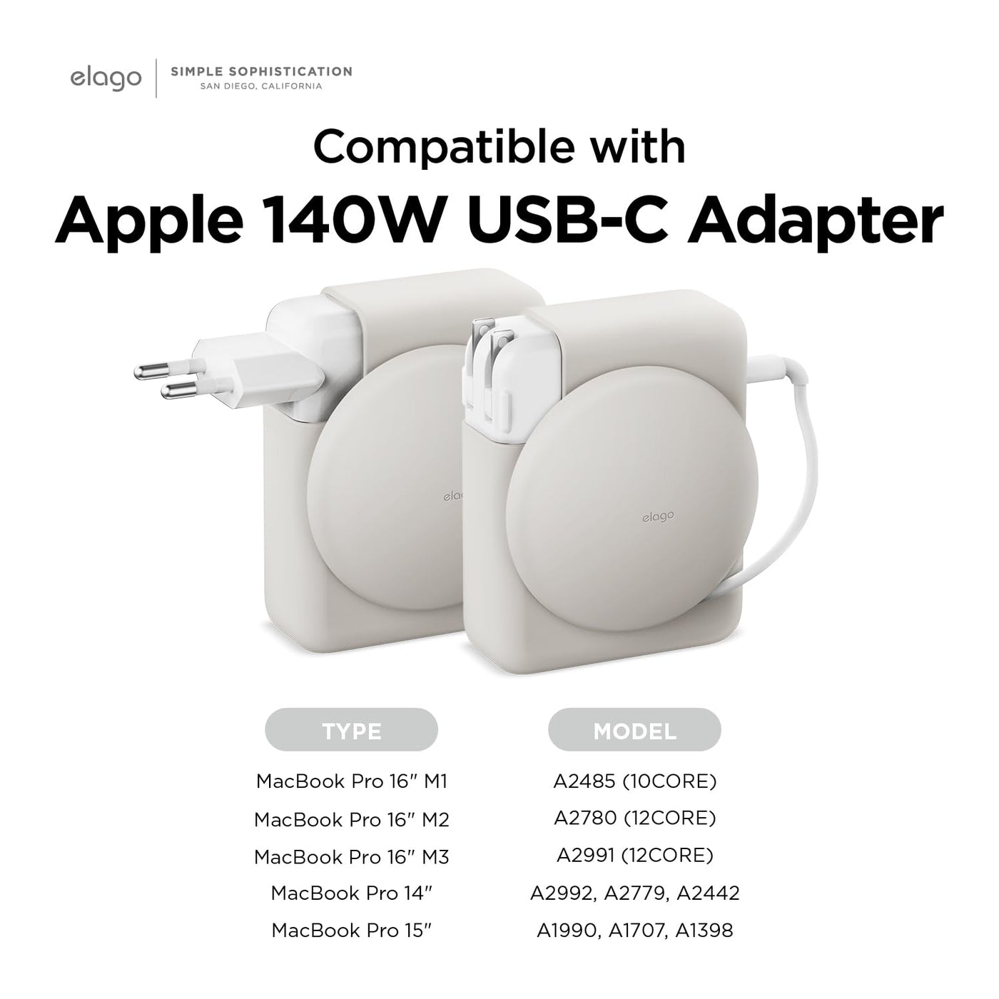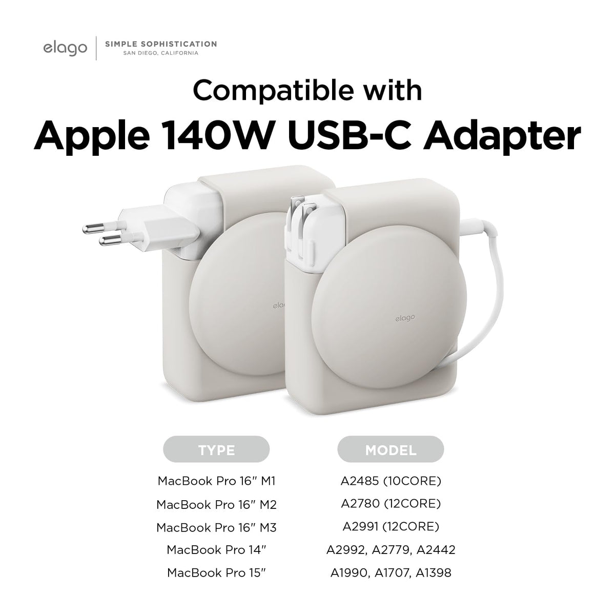 Q: Is the elago Charger Cable Management Case compatible with all MacBook models?A: The elago Charger Cable Management Case is specifically designed to be compatible with the MacBook Pro 2023 16” M2, M3, and 2021 16” M1 models. It is tailored to fit the 140W charger used by these models, ensuring a snug and secure fit.