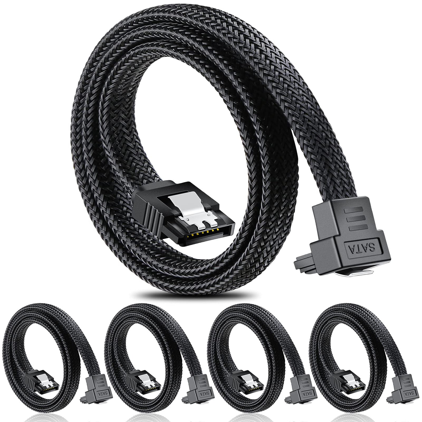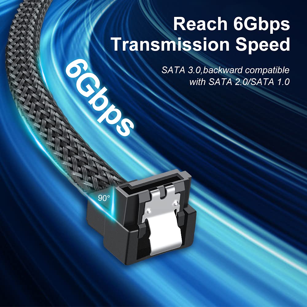 Electop Sata Iii Cable, 6Gbps 90 Degree Right Angle Hdd Sdd Data Cable, Sata 3.0 Nylon Braided Cable With Locking Latch For Sata