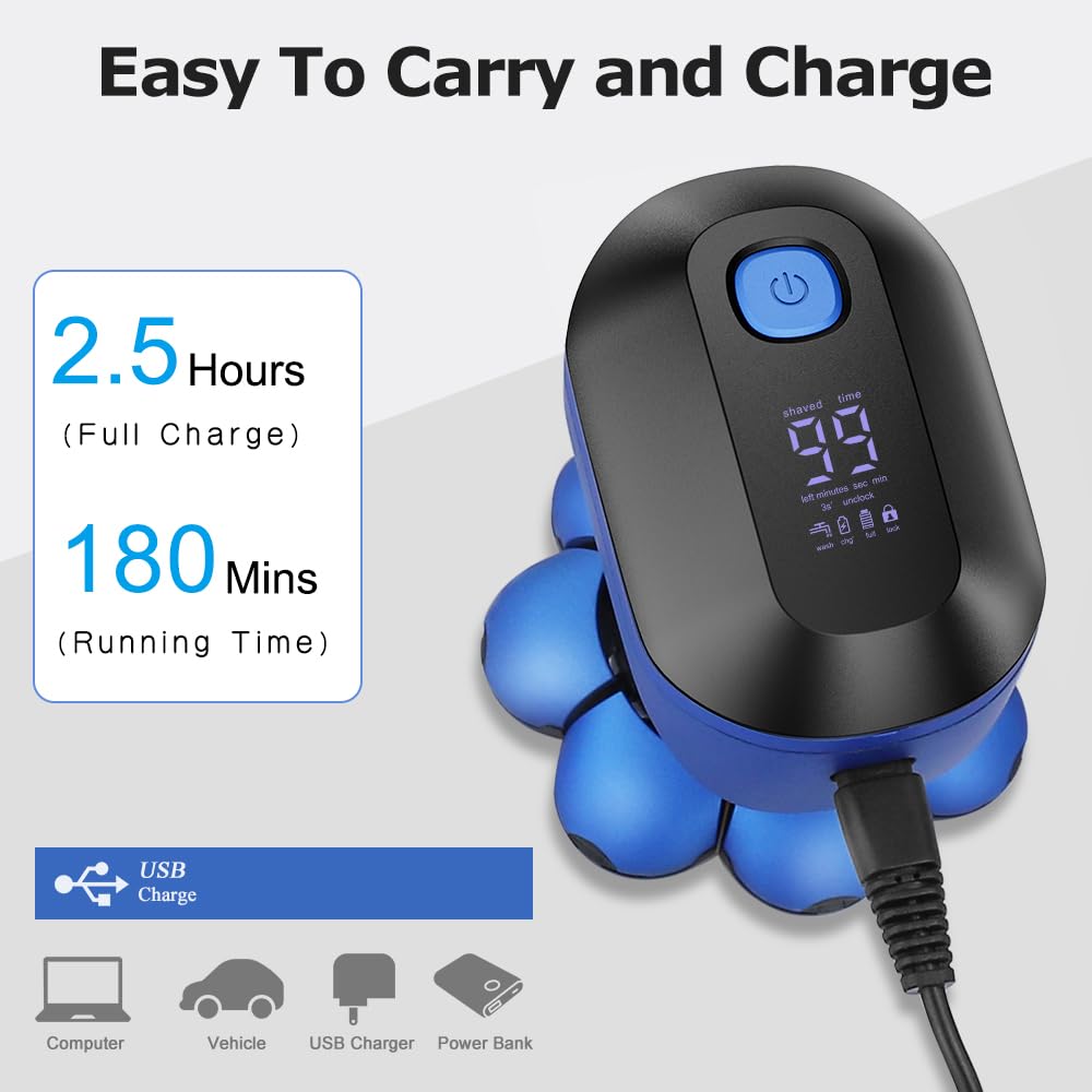 Q: How long does the battery last on the Electric Head Shaver?A: The Electric Head Shaver offers an impressive battery life of up to 180 minutes on a single charge, allowing for multiple shaves without needing to recharge frequently.