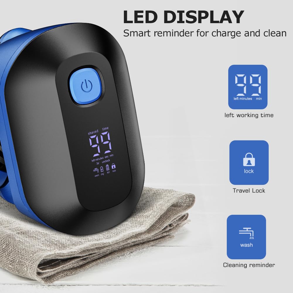 Q: How does the LCD display help during use?A: The convenient LCD display shows the remaining usage time, so you can keep track of battery life and avoid running out of power unexpectedly during your shave.