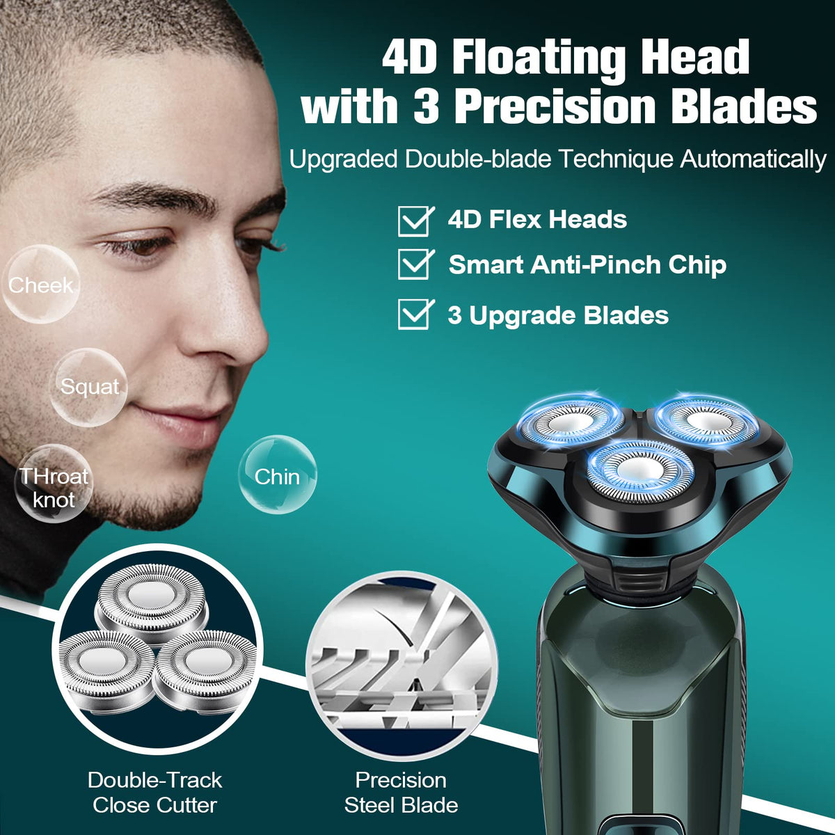 Q: What features make this Electric Razor suitable for sensitive skin?A: The Electric Razor features 3D floating heads that follow the contours of your face, rounded edges to reduce irritation, and a high-speed motor for a smooth, close, and comfortable shaving experience.