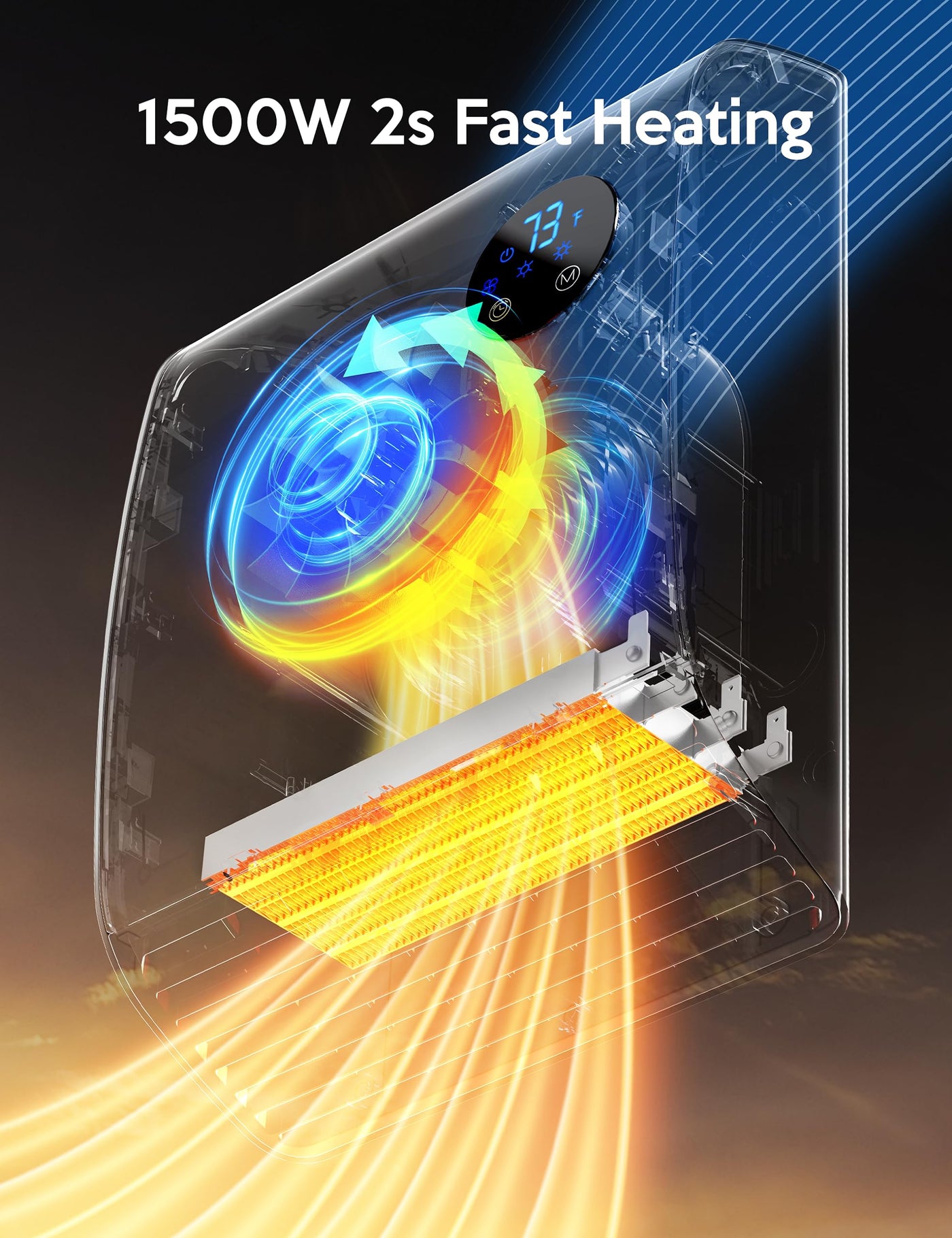 Q: How fast does the Electric Wall Heater heat up a room?A: The Electric Wall Heater can heat up a room in just 2 seconds thanks to its powerful 1500W heating capacity, making it ideal for quick and efficient warming.