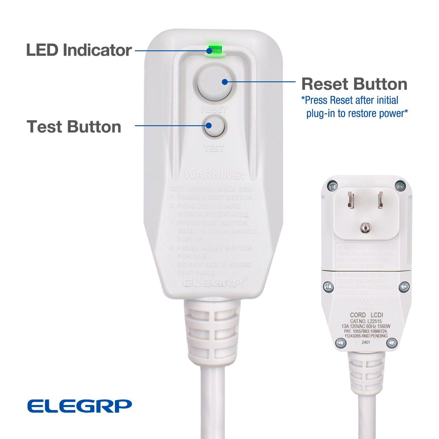 Elegrp L22515 Lcdi Power Cord 7.5Ft Plug Replacement (0651513Ly/L15515) For A/C Air Conditioner, Nema 5-15P Leakage Current Detection Interrupter,120Vac 13Amp 1560W 60Hz, Ul Certified.