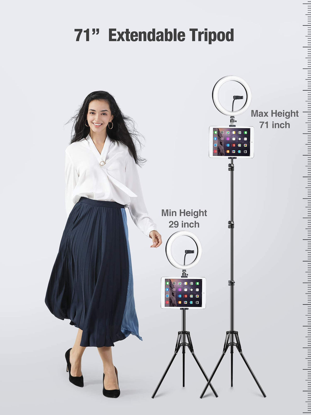 Elitehood 12 Ring Light With Tripod Stand (72 Tall) & Ipad/Phone Holder, Dimmable Selfie Circle Led Lights Ringlight For Video R