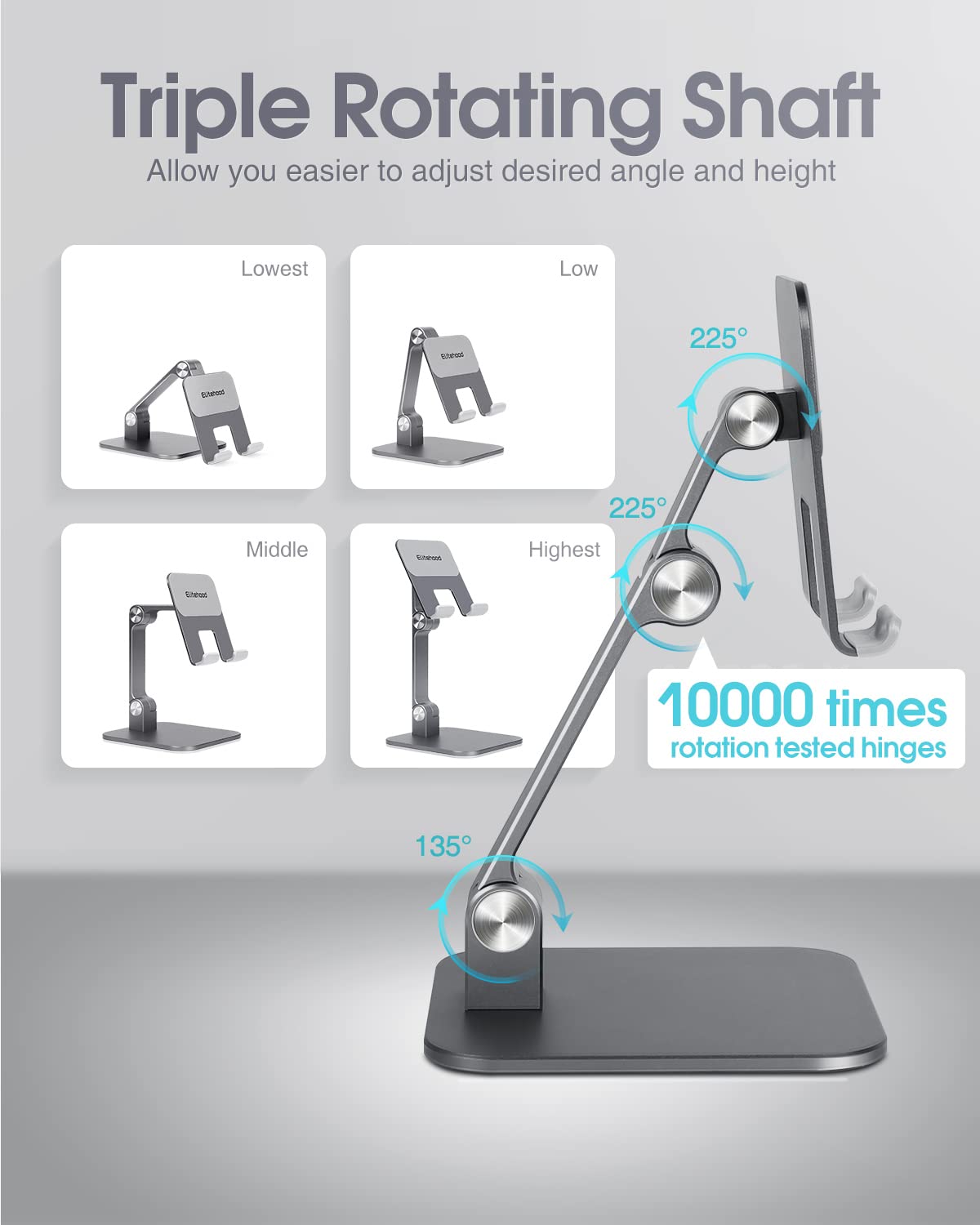 Elitehood Heavy Duty Aluminum Ipad Stand, Foldable Ipad Stand Holder For Desk, Height Adjustable Tablet Stand Dcok For Ipad Pro 12.9 11, Ipad Air Mini 4 5 And More 4-13.5 Inches Tabelts, Gray