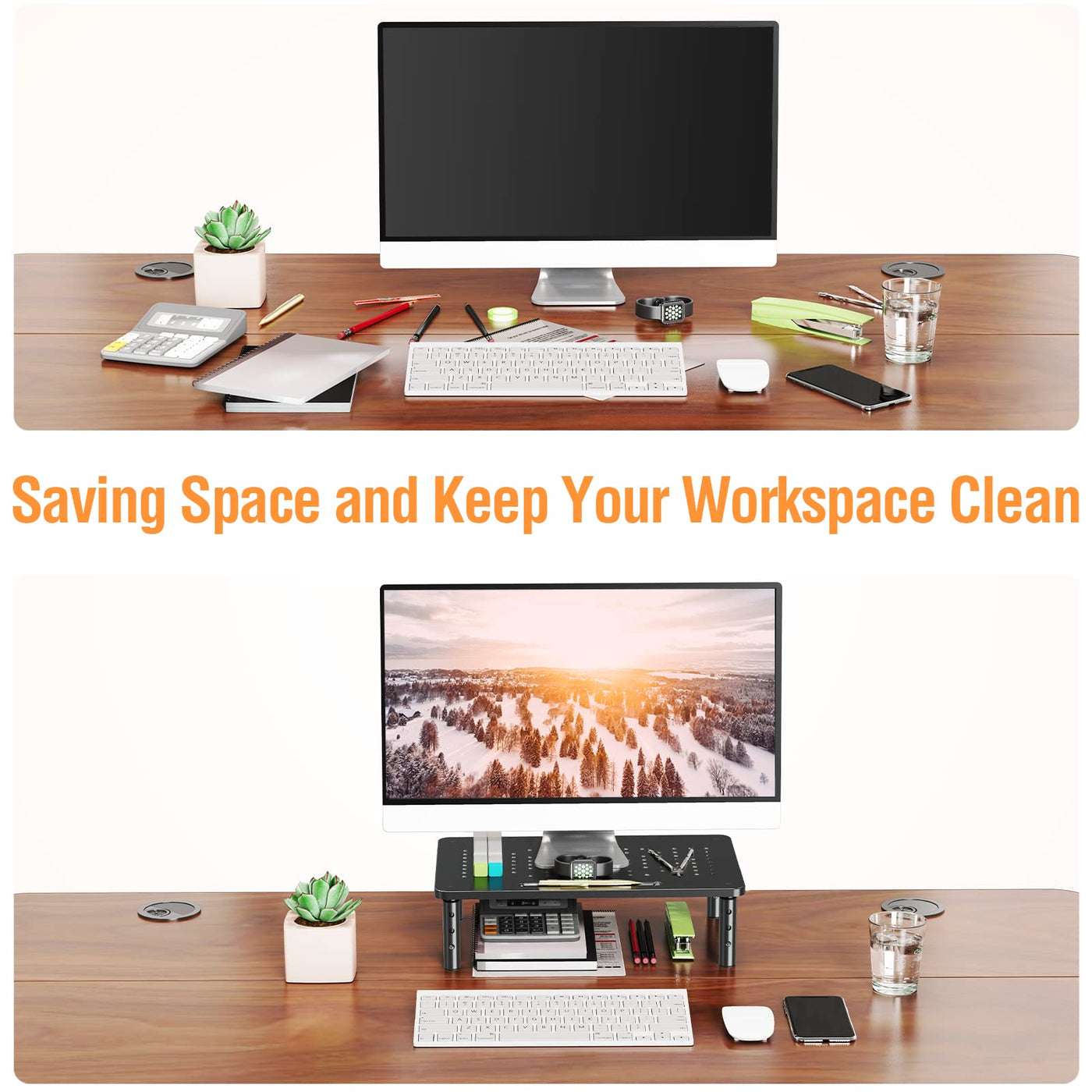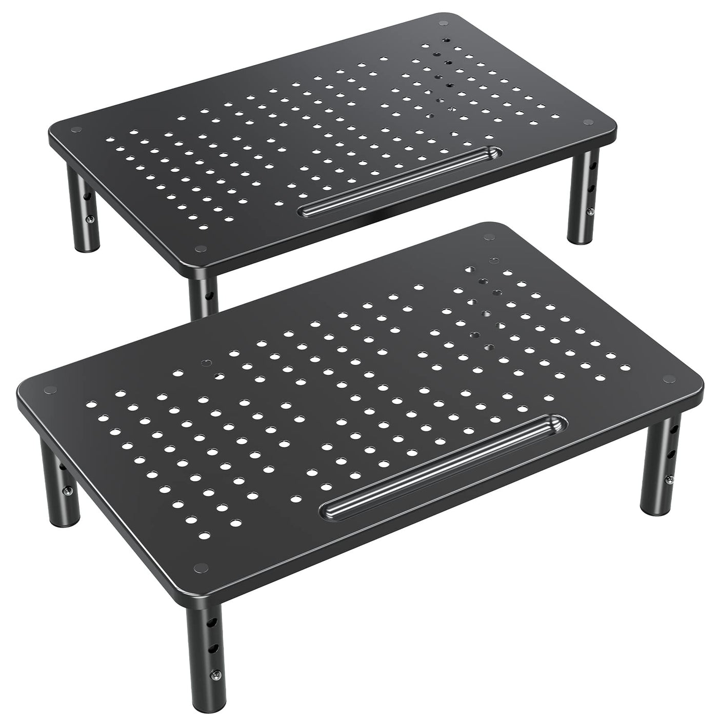 Elived 2 Pack Monitor Stand Riser 3 Height Adjustable Monitor Stand For Laptop, Computer, Pc, Printer, Mesh Metal Monitor Rise