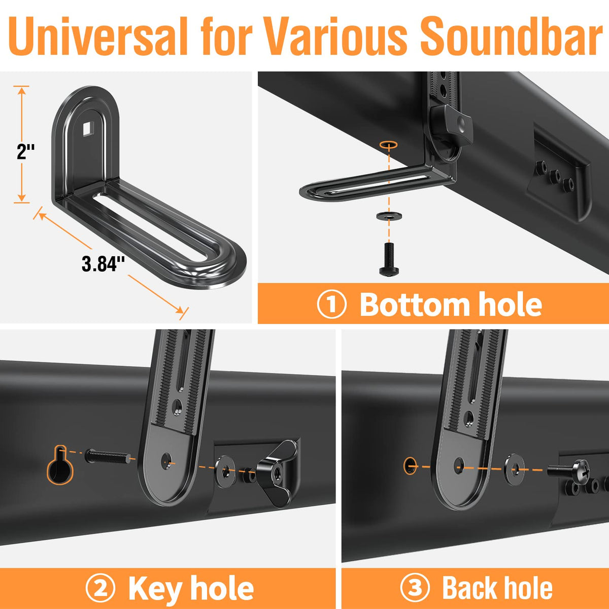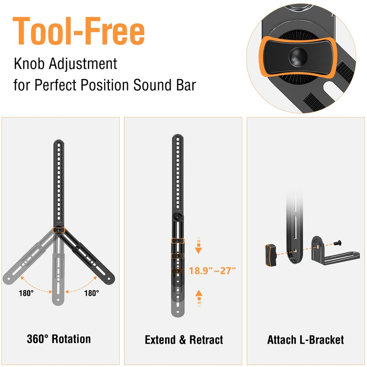 Elived Soundbar Mount, Sound Bar Tv Bracket Mounting Above Or Under Tv Fits Most Sound Bars Up To 15 Lb Tool-Free Knob Adjustable For 23-90'' Tvs With Detachable Extension Arms And L-Brackets