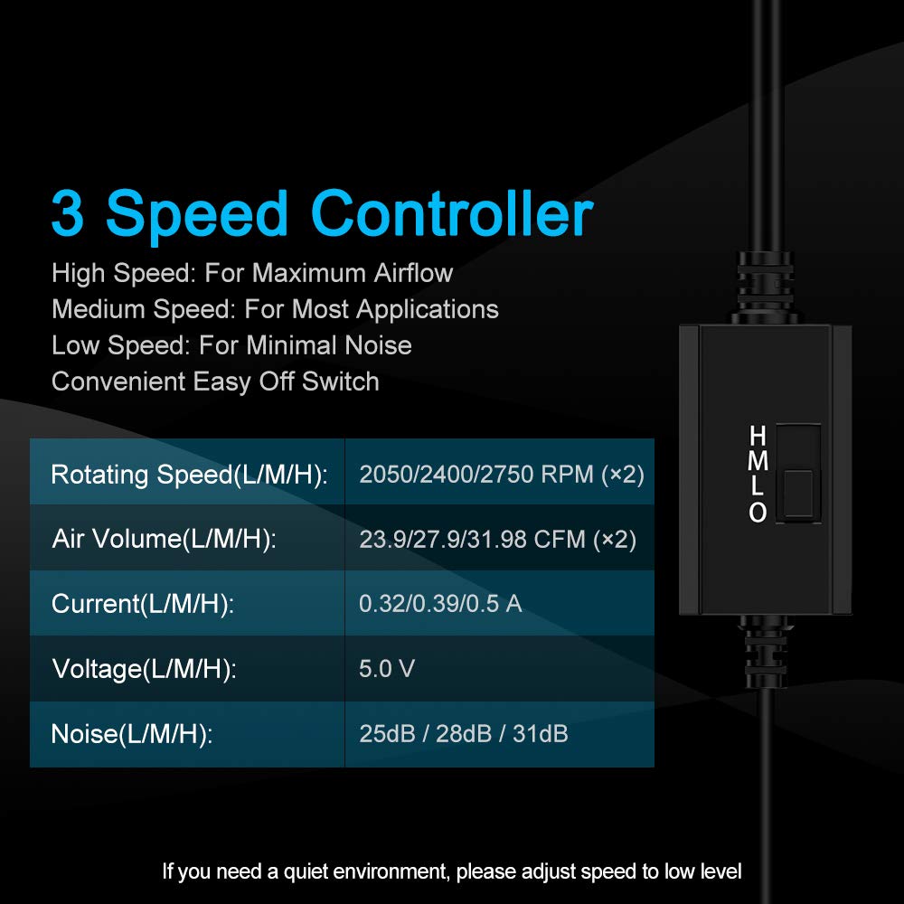 Eluteng Dual Usb Fan 80Mm, 3 Speed Adjustable Usb Ventilator With 2750Rpm 5V Fan For Computer/Laptop/Router/Tv Cabinet/Dvr/Xbox/