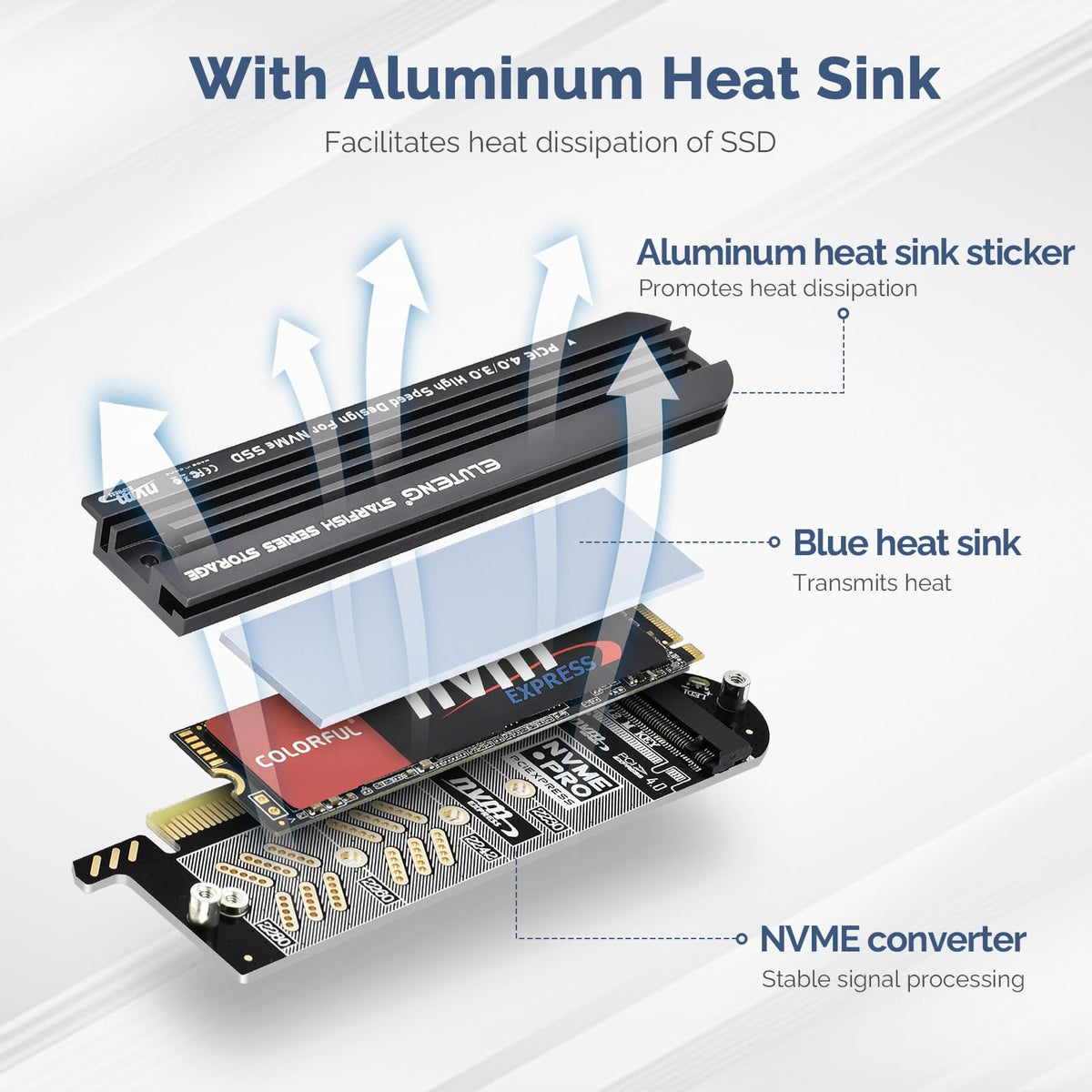 Eluteng Nvme Pcie 4.0 Adapter Nvme M.2 Ssd To Pcie X4/X8/X16 Card With Aluminum Heat Sink M.2 To Pci Express Ssd Expansion Card
