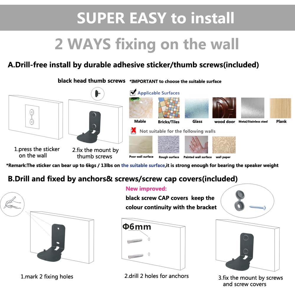 Emaquin Wall Mounts Brackets For Sonos Roam 2/Sonos Roam/Sonos Roam Sl(Include 2 Pcs,Drill Free,Sturdy Metal,Enduring Paint Fini