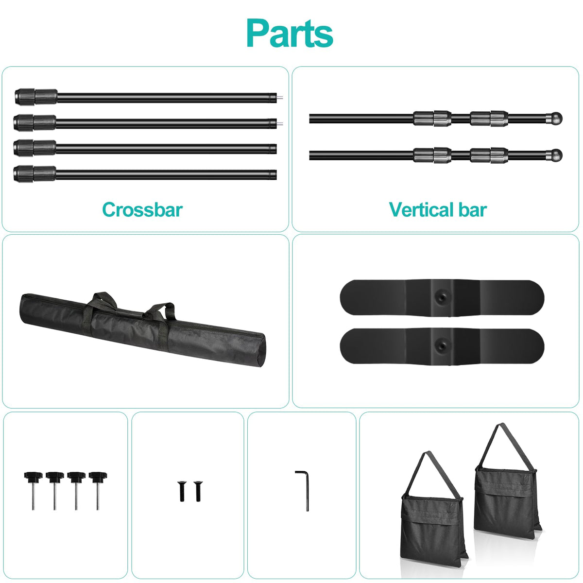 Q: What materials is the backdrop stand made from?A: The backdrop stand is constructed from lightweight yet sturdy aluminum alloy, ensuring durability while remaining portable for various uses.