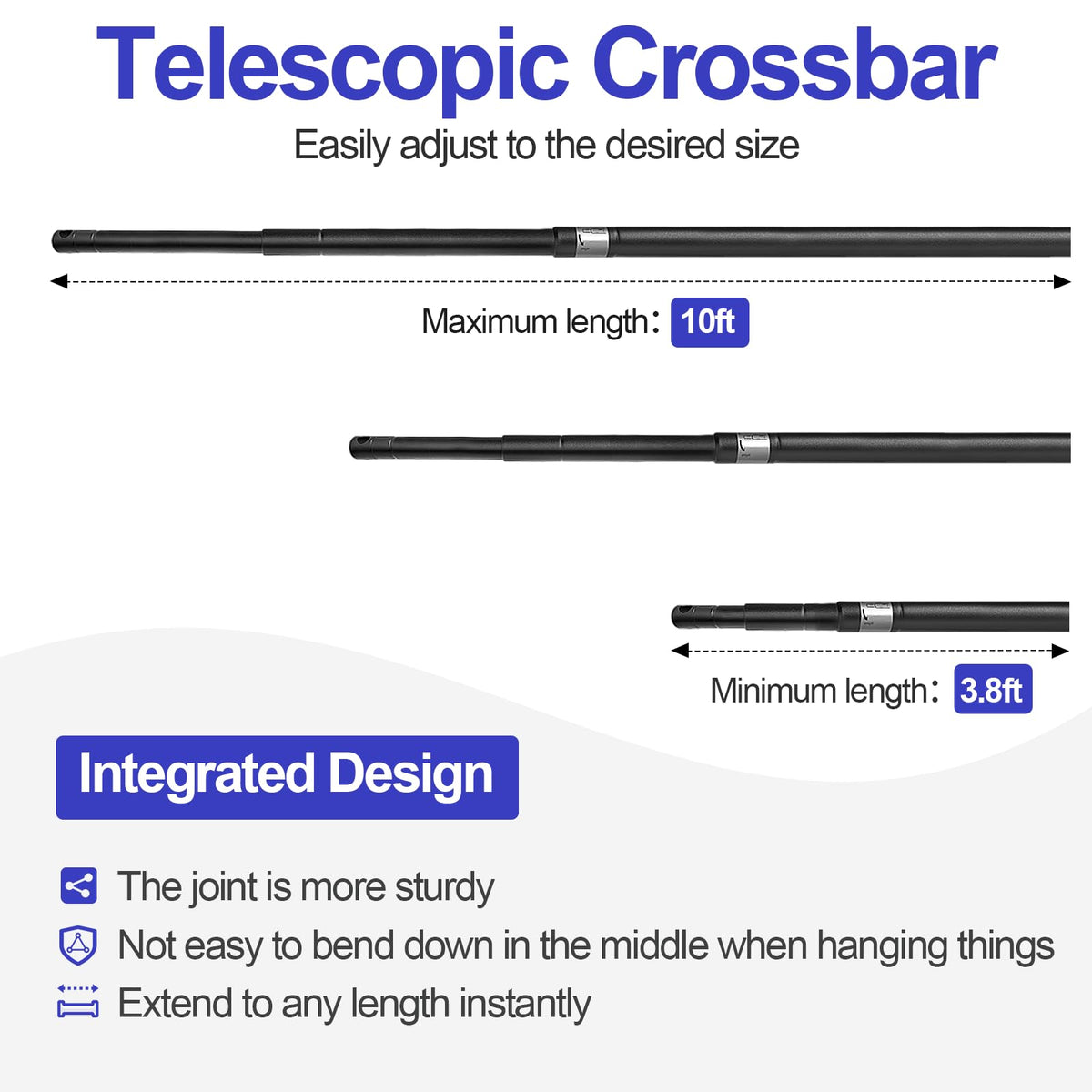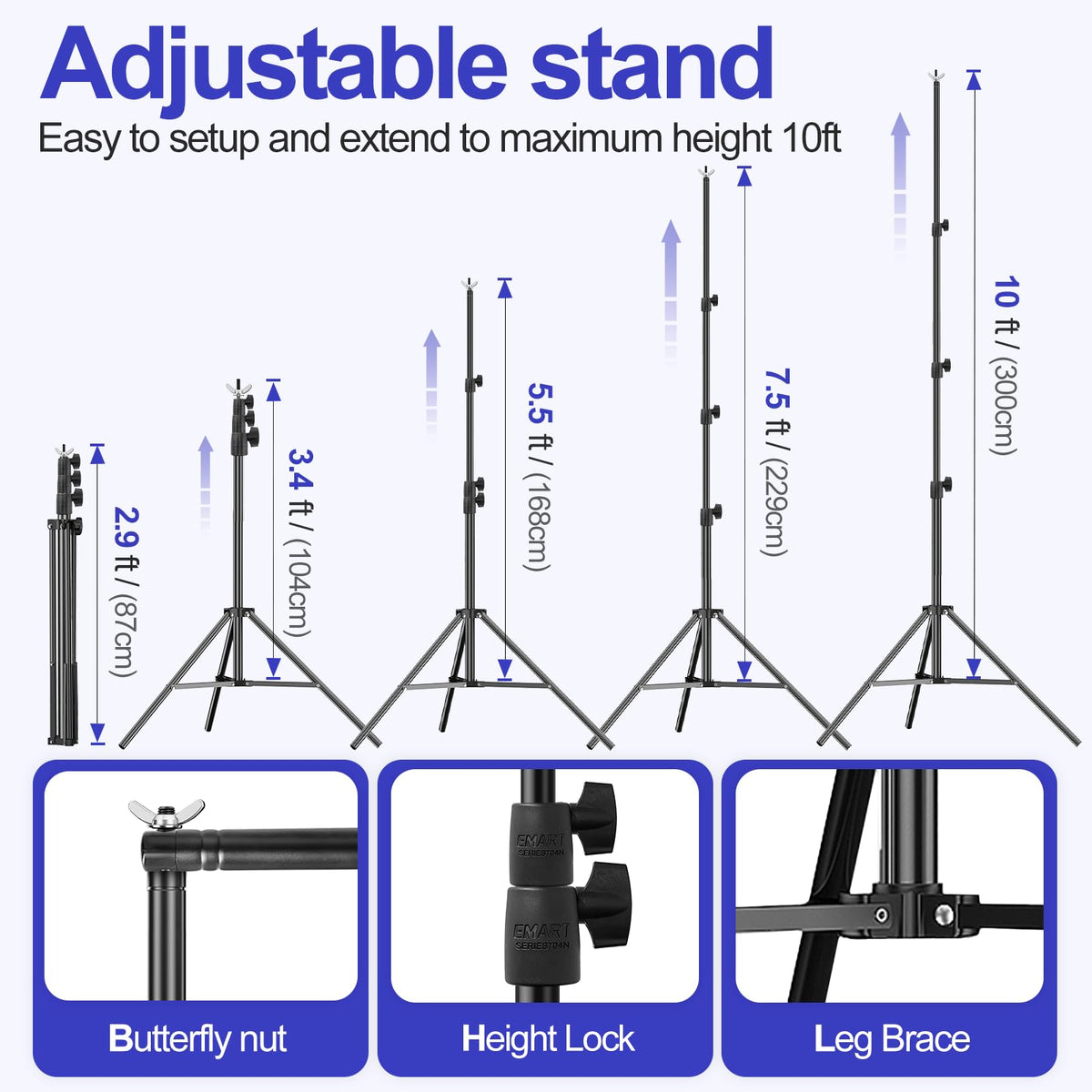 ?Package Include?: (2) X Support Stand, (1) X Crossbar, (6) X Spring Clamp, (2) X Sand Bag, (1) X Portable Carrying Bag. | ?Tripod Support Stand?: Adjustable Height (Min 3.4Ft - Max 10Ft), The Folded Size Is 2.9Ft. Made Of 100% Aluminum Material, Stable And Sturdy. Perfect For Parties, Studio Or Wedding. | ?Telescopic Crossbar?: Adjustable Width (Min 3.8Ft - Max 10Ft). With Convenient Twist Locking Design, You Can Stretch Or Shorten The Crossbar Easily. | ?Complete Accessories?: Come With 6Pcs 4.5