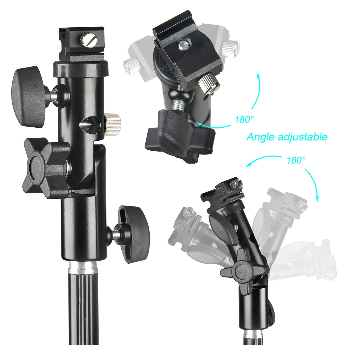 2* 33'' Translucent White Umbrella 2* 33'' Black & Silver Reflective Umbrella Material: Nylon Size:33'' Diffuse The Flash Light And Reflects The Flash Light Eliminate Glare And Spots 2X Shoe Mount E-Type Brackets Height: 4.9 Inch Net Weight: 5.7 Oz Made Of Anodized Aluminum Metal & Abs Flash Mount Adapter Adjust The Umbrella And Flash In Different Angle Suitable For All Speedlites/Flashes With Standard Coldshoe Mount 2X 83'' Light Stands Aluminum Alloy Construction Sections: 3 Max Height: 83'' Min Height: 33'' Folded Height: 28'' Diameter Of Legs: F0.63'' Net Weight: 2.20 Lbs 1X Heavy Duty Carry Case Material: Nylon Stores The Entire Kit Note:The Speedlight Is Not Included.