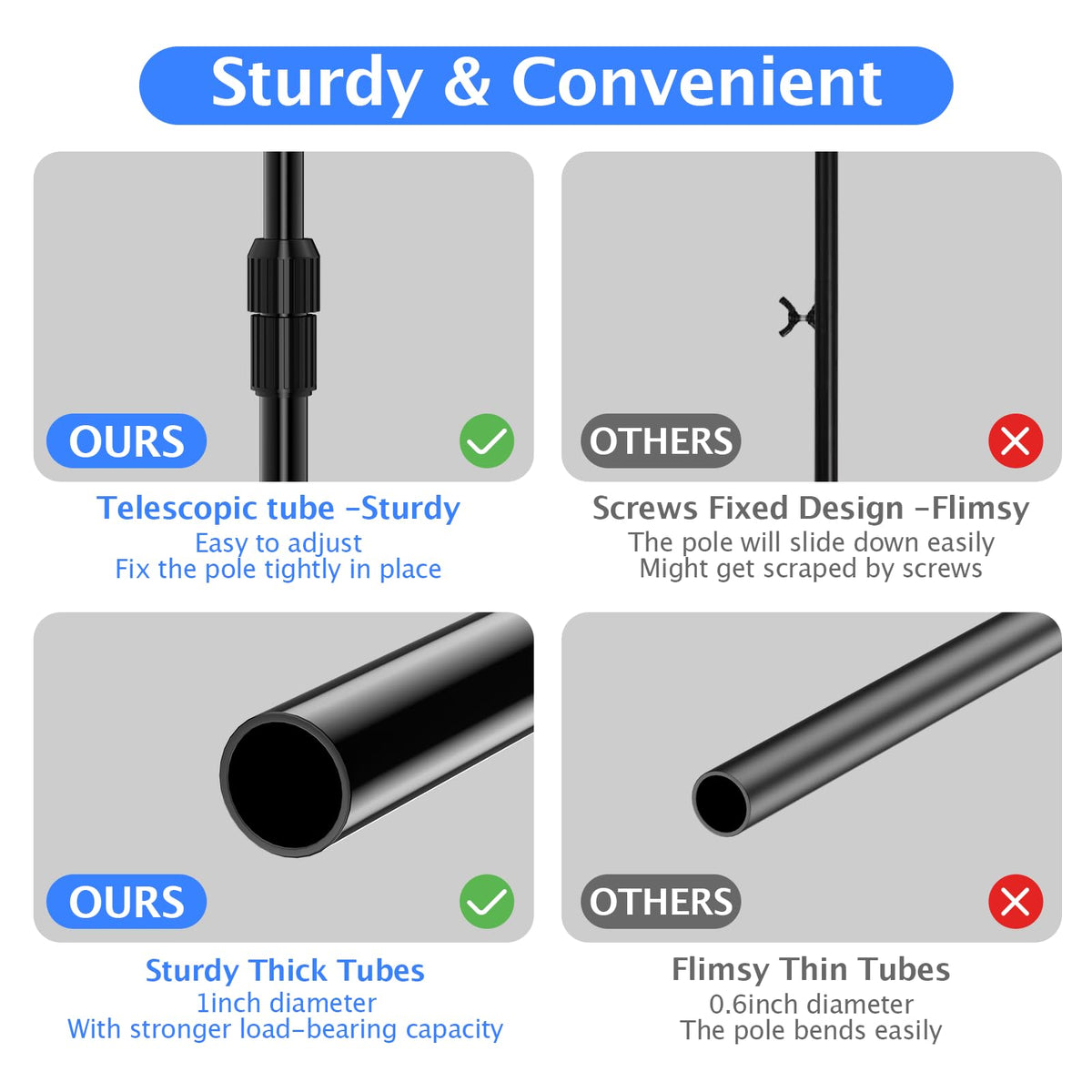 Q: What materials are used in the construction of the rod stand?A: The EMART Telescopic Rod Stand is made from durable aluminum, ensuring both lightweight handling and strong support for your decorations.