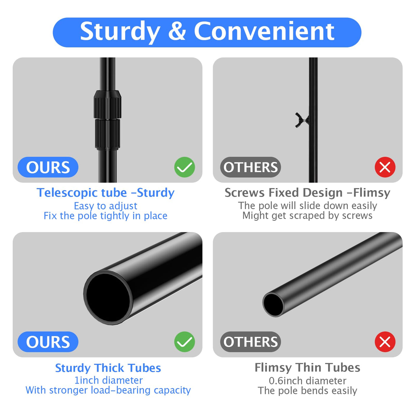 Q: What types of decorations can I hang on this rod stand?A: You can hang a variety of decorations such as balloons, flowers, string lights, and garlands on the rod stand to create personalized backdrops for weddings, parties, and other occasions.