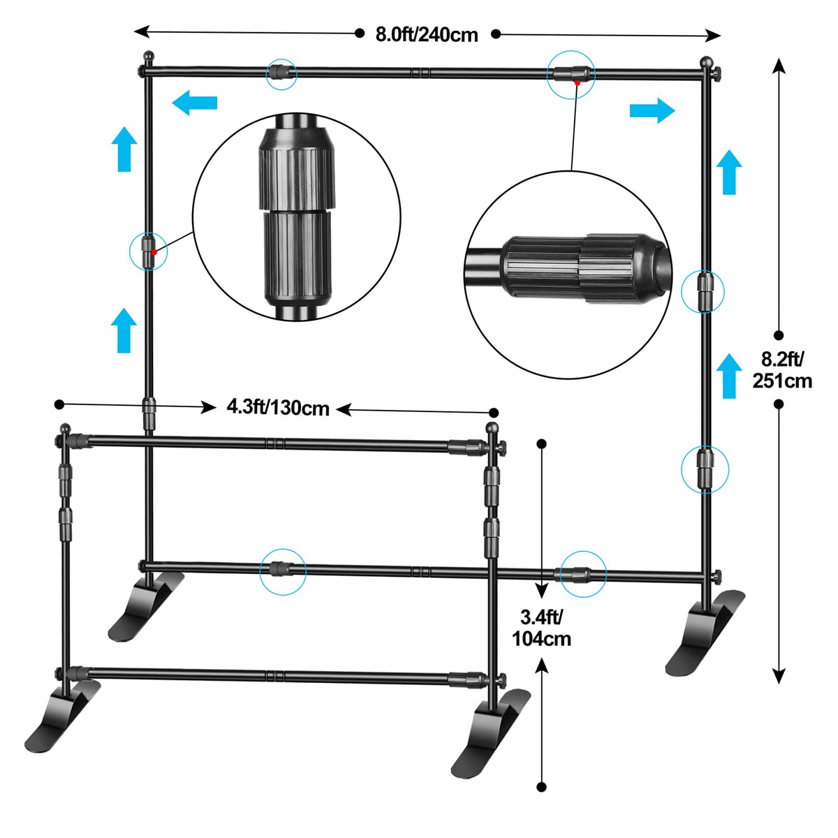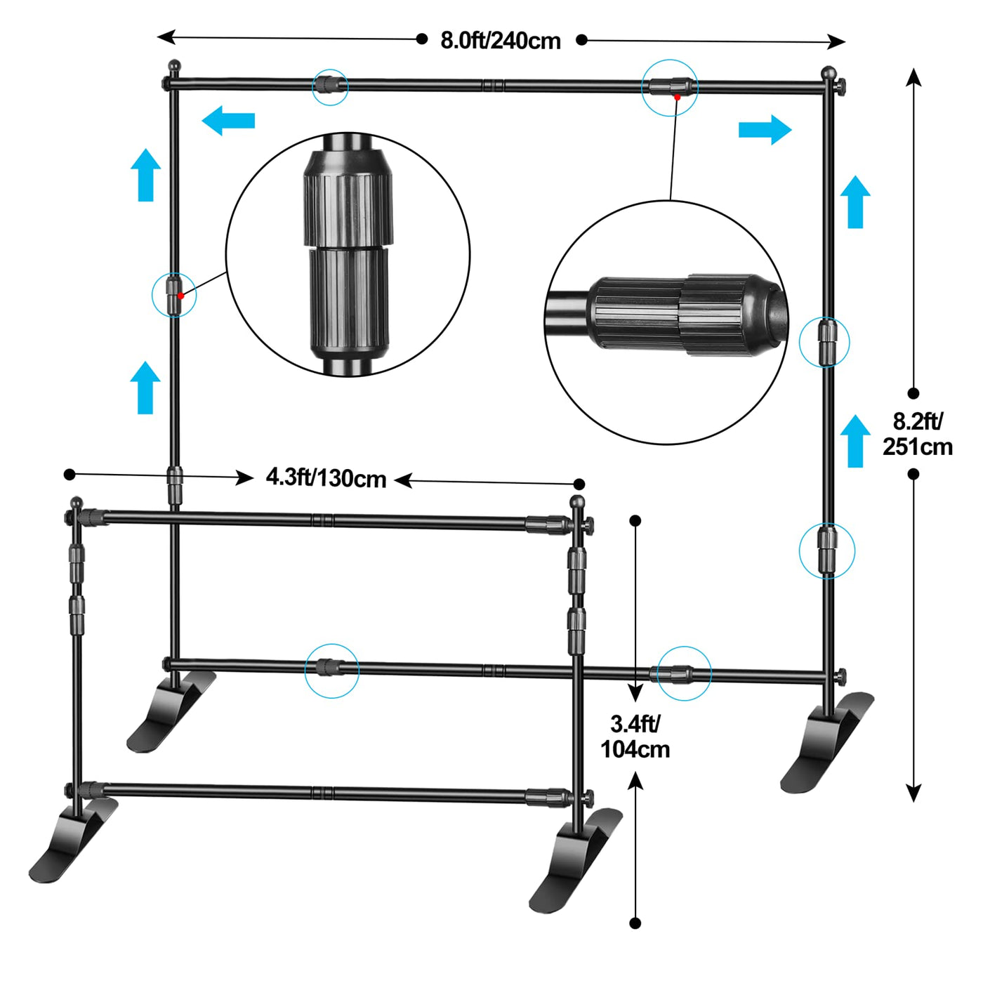 Emart 8 X 8 Ft Adjustable Telescopic Tube Backdrop Banner Stand, Heavy Duty Step And Repeat Background Stand Kit For Photography Backdrop And Trade Show Display