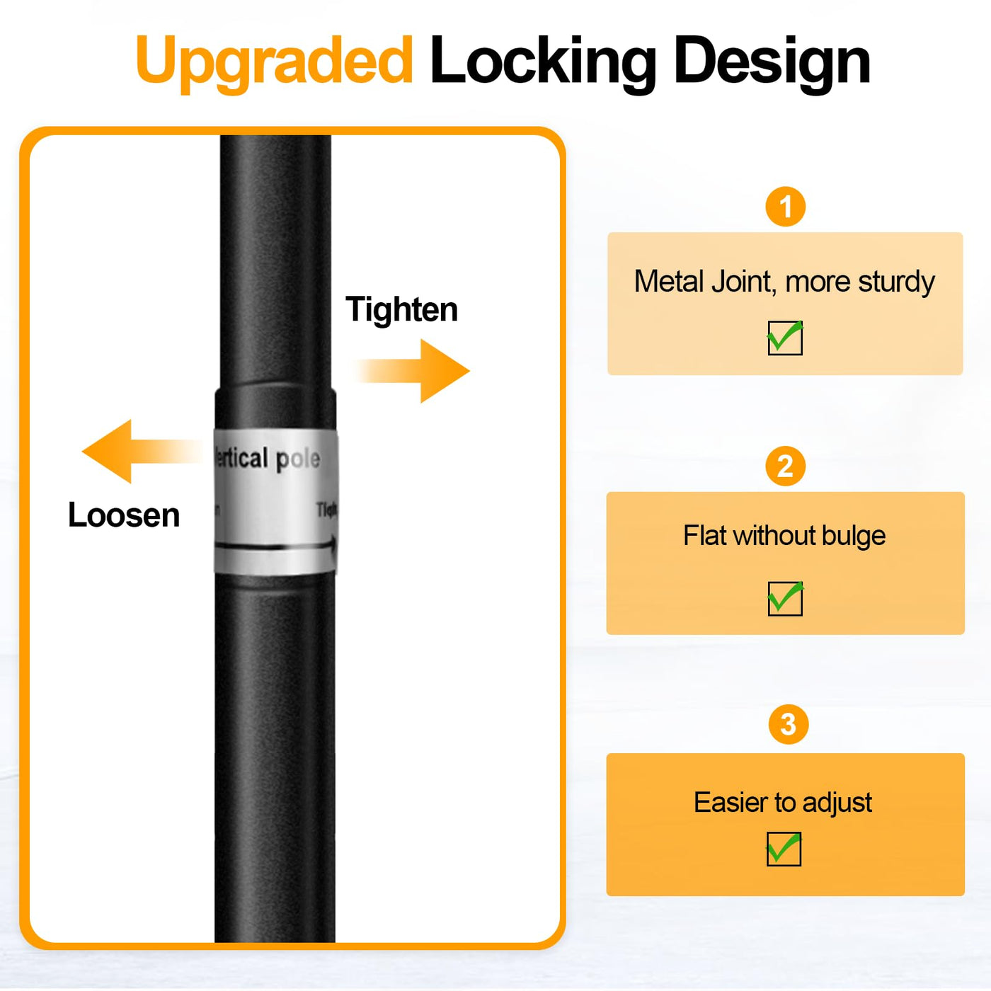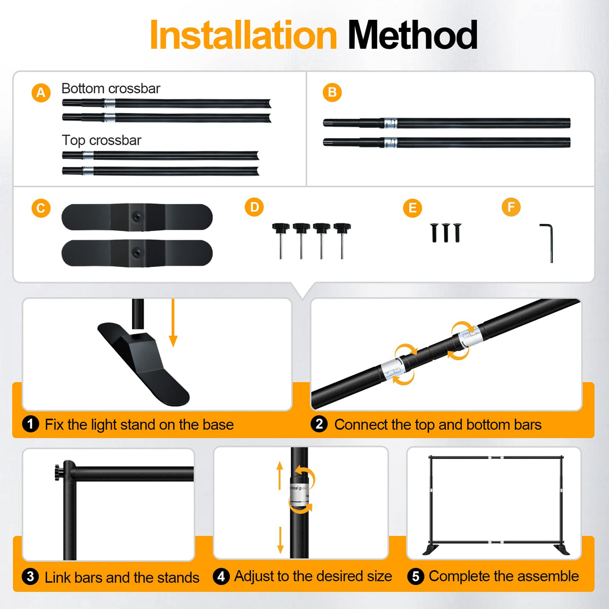 ?Upgraded Heavy Metal Base? Our Background Stand Is Made Of Solid Heavy Iron, With A Powerful Load Capacity Of 16 Pounds. The Base Area Is Widened And Thickened, Which Is More Stable Than Similar Products On The Market, And Suitable For Different Kinds Of Backdrops. | ?Thickened Pipe Diameter? The Overall Pipe Diameter Of The Stand Is Thickened, The Maximum Pipe Diameter Of The Light Stand Is 38Mm, And The Maximum Pipe Diameter Of The Crossbar Is 33Mm. More Stable In Use And Can Bear More Weight. | ?Adjustable Size? The Telescopic Banner Stand Is Suitable For Multiple Size, With Height Adjust From 3.4 Ft To 8.2 Ft And Width Adjust From 4.3 Ft To 8 Ft, The Maximum Visible Graphic Size Is 8 Ft Wide X 8.2 Ft High. | ?Rotary Locking Design? Differ From The Common Knob Design, The Rod Itself Is Used For Rotation Reinforcement; The Surface Of The Rod Body Can Be Kept Smooth Without Protrusion. | ?Multiple Application Scenes?Suitable For Meetings, Photo Exhibitions, Local Exhibitions, Store Promotions, Photo Booth Backgrounds, Etc.