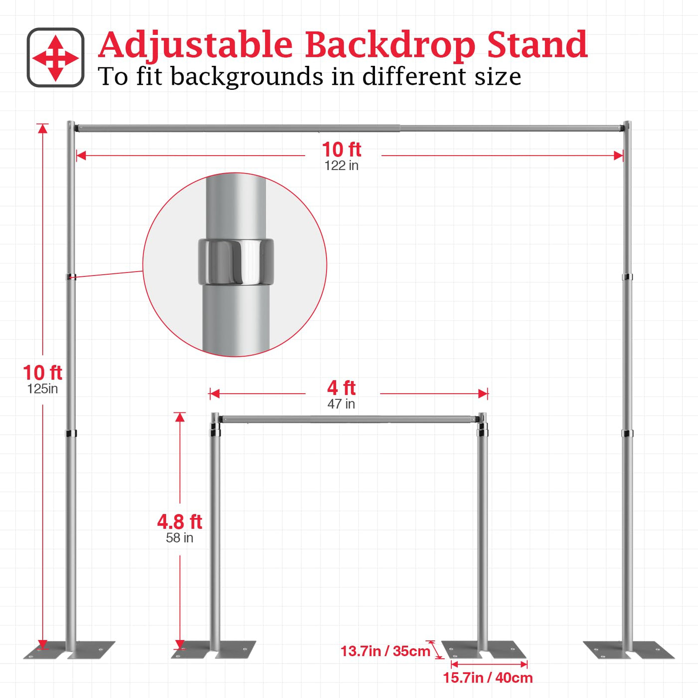 Emart Pipe And Drape Backdrop Stand Kit, Backdrop Stand Heavy Duty 10Ftx10Ft, Adjustable Metal Frame For Backdrop, Background Stand Backdrop For Wedding Birthday Party Banquet Decorations