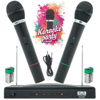 Emb Em 200W Professional Wireless Microphone System Dual Handheld (2 Microphones) 1 Cordless Fm Receiver Including 1X 1/4'' Jack