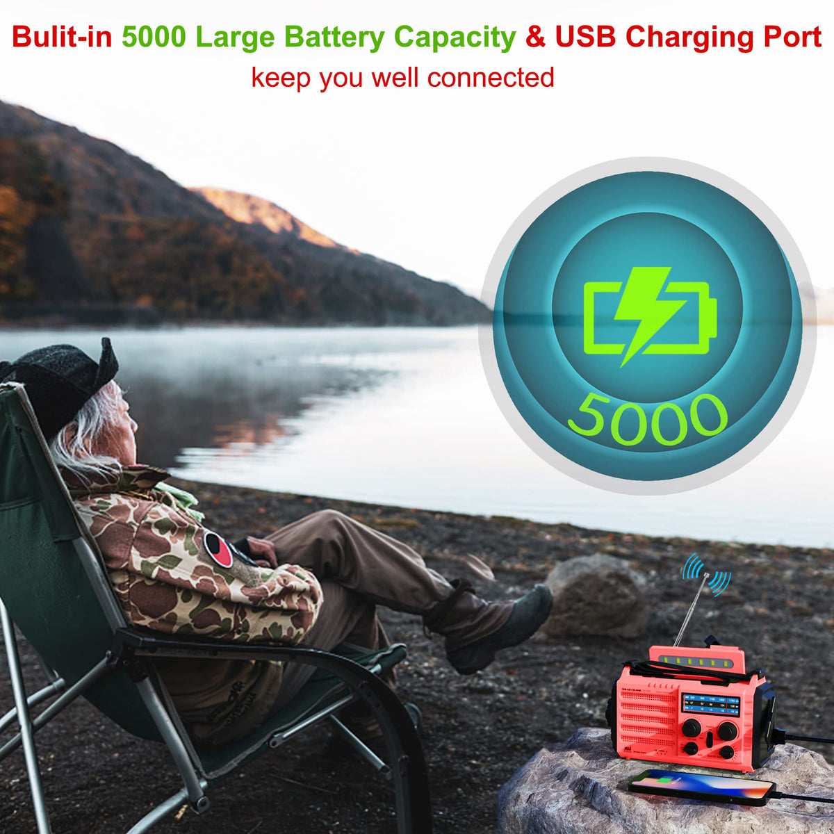 Emergency Solar Hand Crank Radio,Am/Fm/Sw Noaa Portable Weather Alert Radio With Flashlight,Reading Lamp,Phone Charger,Rechargea