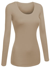 Emmalise Womens Junior And Plus Size Basic Scoop Neck Tshirt Long Sleeve Tee, Medium, Taupe